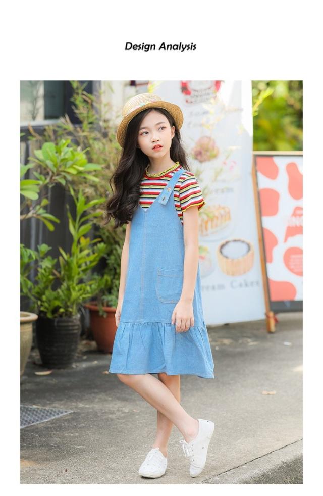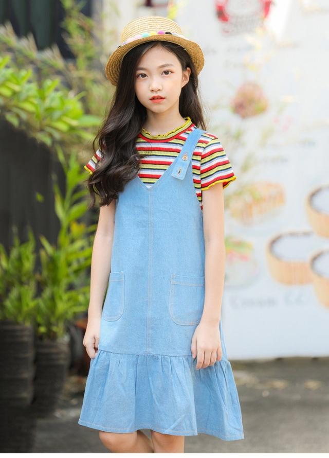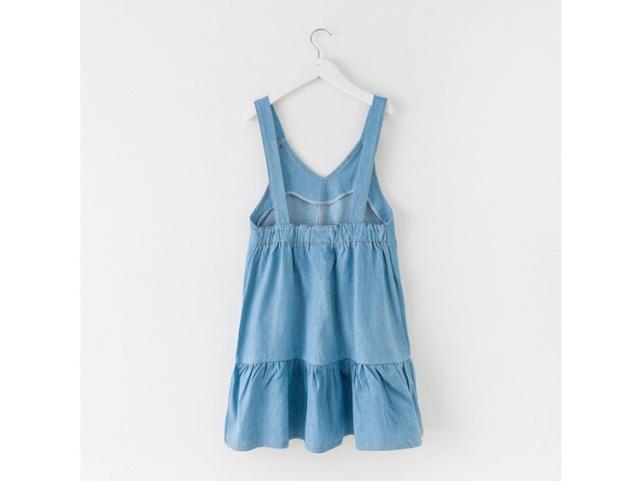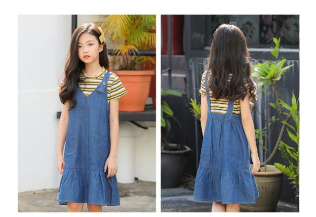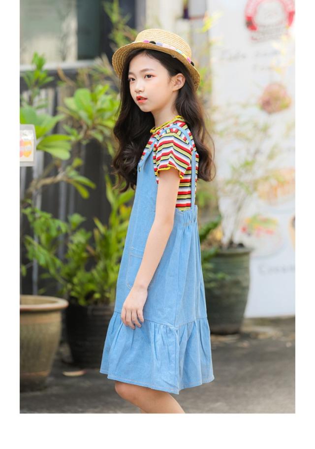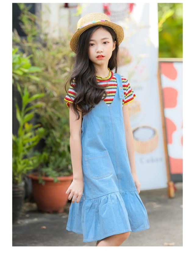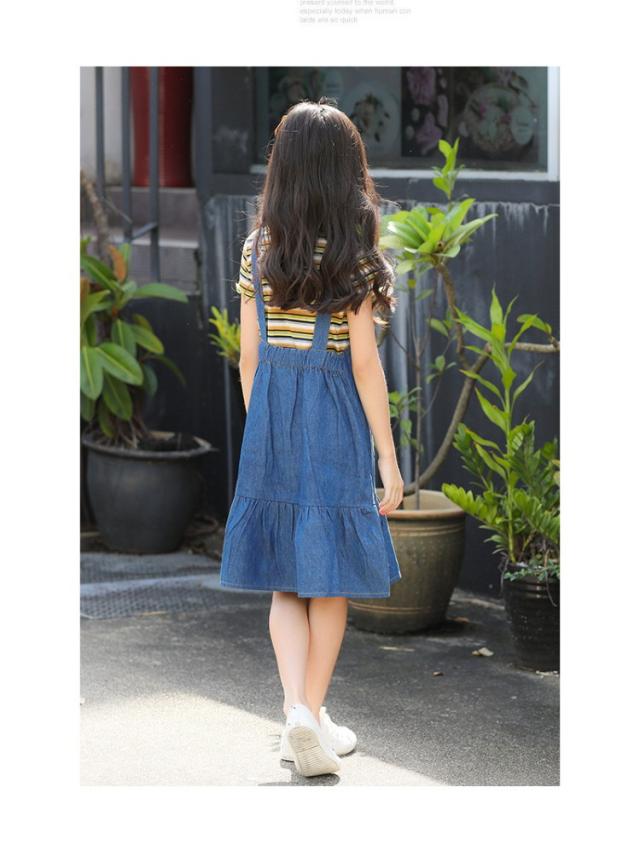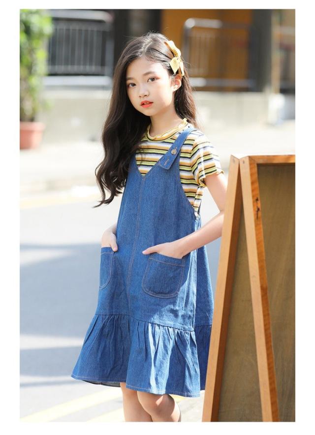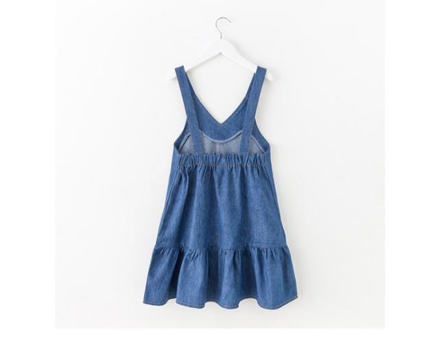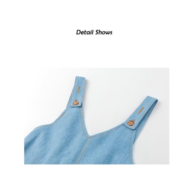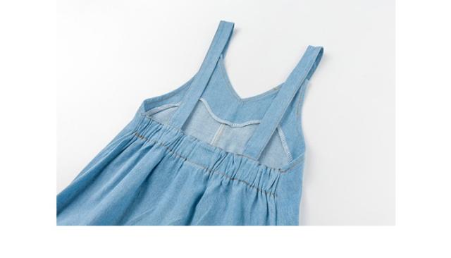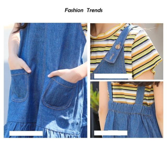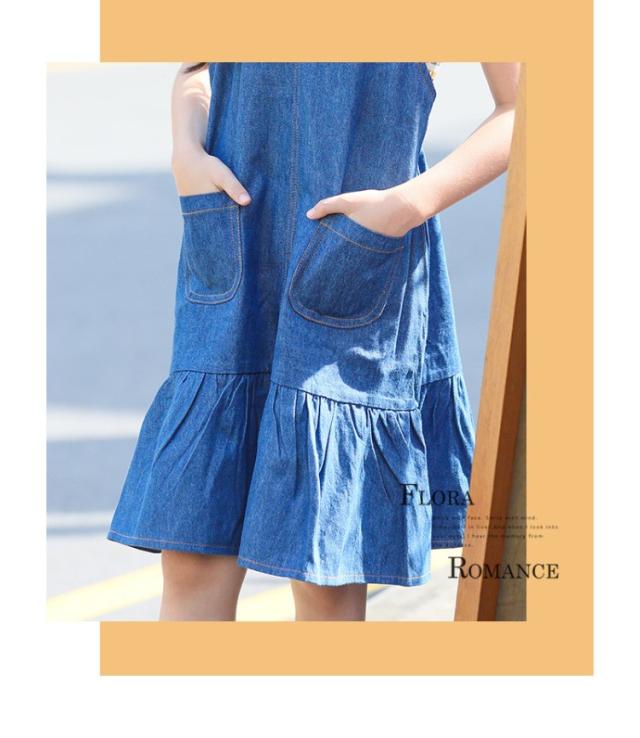 子供服 女の子 デニムワンピース ジャンパースカート サロペットスカート ノースリーブ ミディアム丈 フレアスカート 子供用 キャミワンピ Aライン スクープド