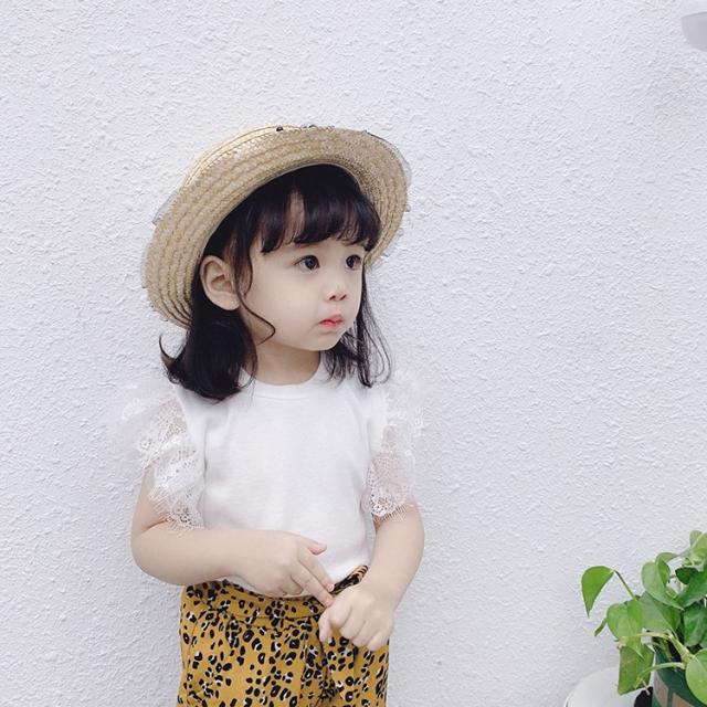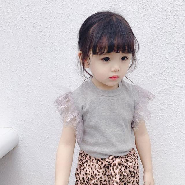 Tシャツ シャツ 子供 女児 女の子 トップス 半袖 ノースリーブ 韓国子供服 カジュアル キッズ 女の子 タンクトップ 肩フリル ボーダー リボン セーラー 春 夏