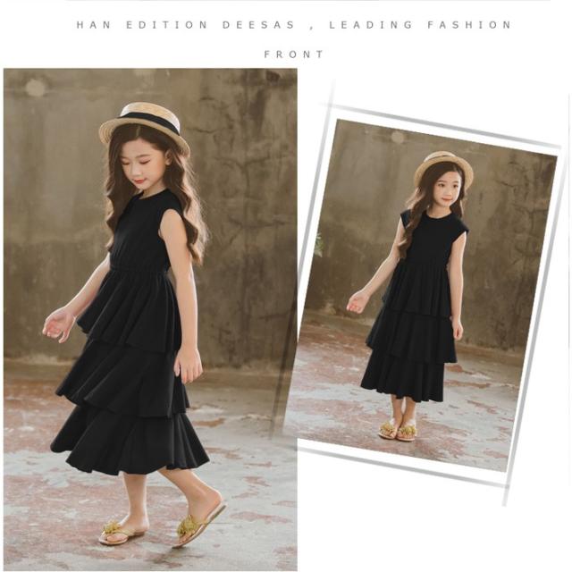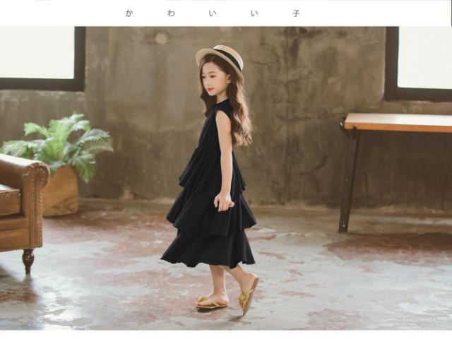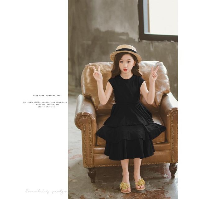 子供服 半袖 ワンピース マキシ丈 無地 ワンピース ベージュワンピース 女の子 キッズ 夏 ファッション感 学生服 ジュニア 女の子 2019夏新作