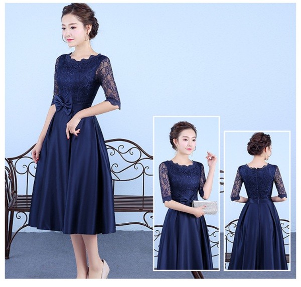 パーティードレス ミモレ丈 結婚式 お呼ばれパーティードレス 結婚式 二次会 ゲストドレ ワンピース 袖あり パーティードレス卒入式