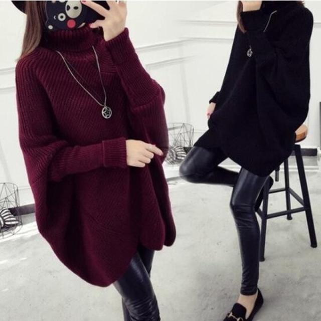 ニットセーター レディース タートル襟 ニットソー 無地 厚手長袖 大人 ゆったり 着やすい セーター トップス ドルマンスリーブ 秋冬