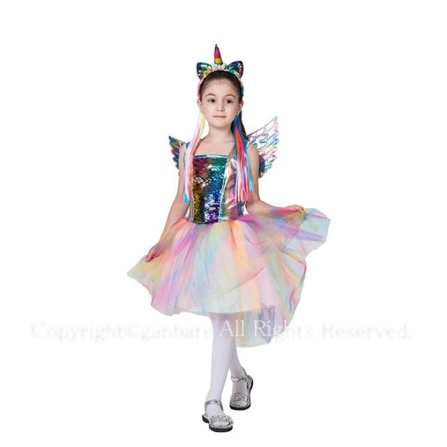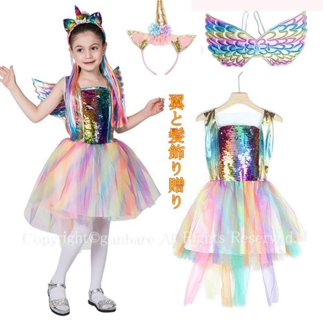 ハロウィン 衣装 ピエロ キッズ 子供 女の子 ピエロの服 道化師 翼付き お姫様 プリンセス カラフル 幼稚園 王女 コスチューム 仮装 変装 クリスマス 衣装 妖精