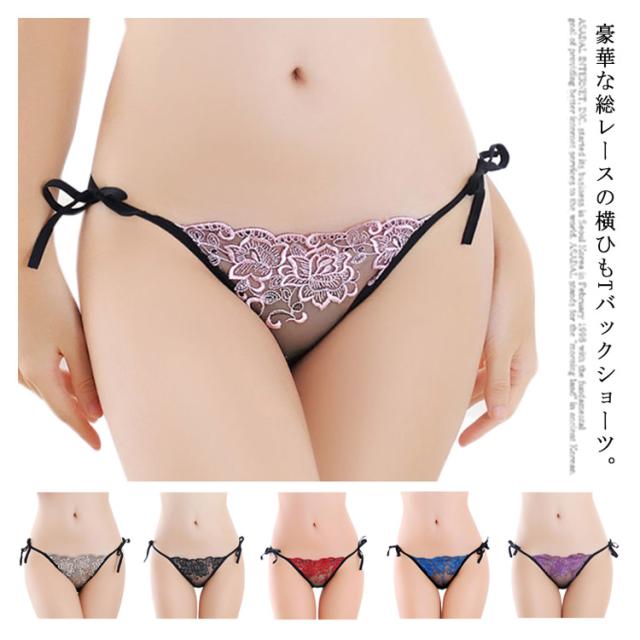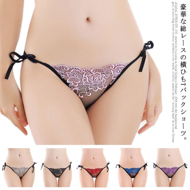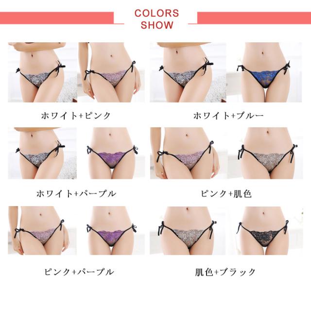 Tバックショーツ レース 紐 ヒモ セクシーショーツ 下着 レディース タンガ 刺繍 2枚いセット シースルー 花 送料無料