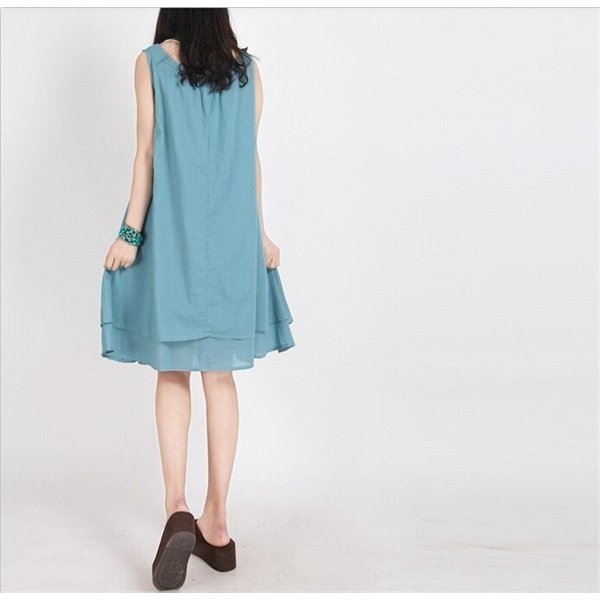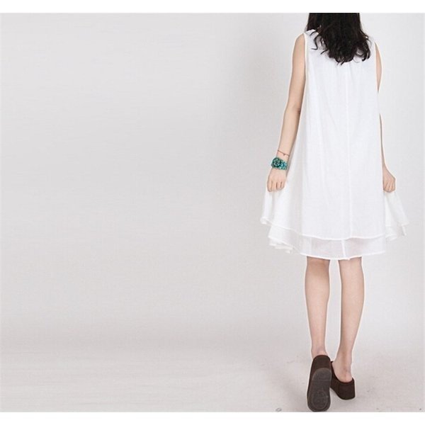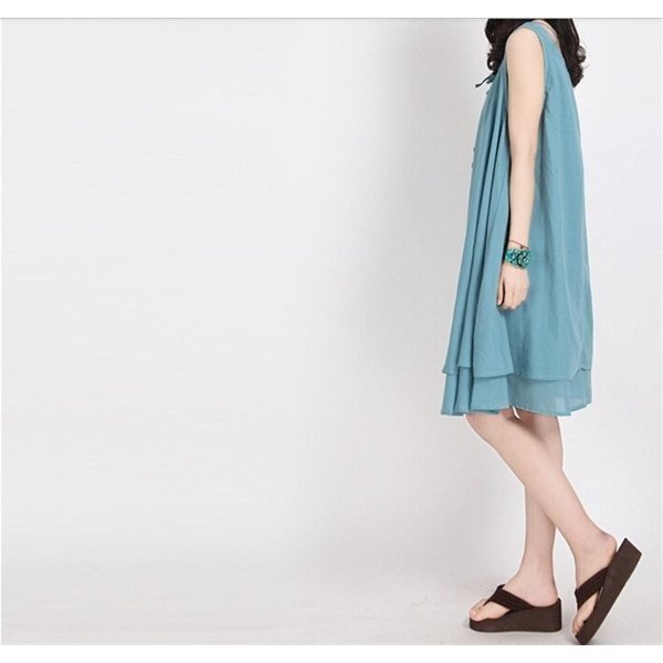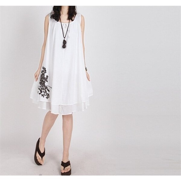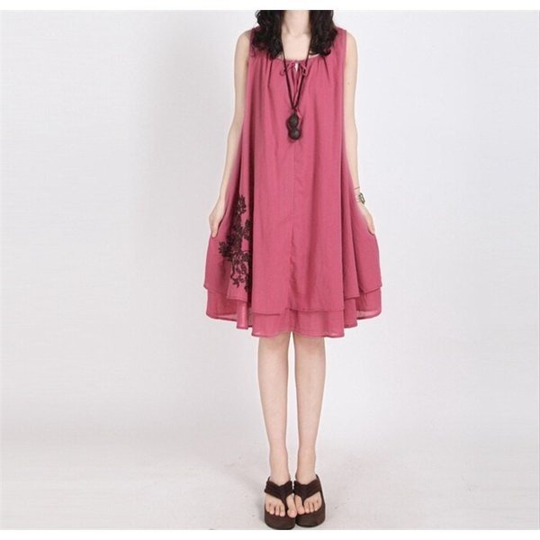 ワンピース レディース ノースリーブ チュニック Aライン ティアード 刺繍 きれいめ 上品 ビーチ 春夏