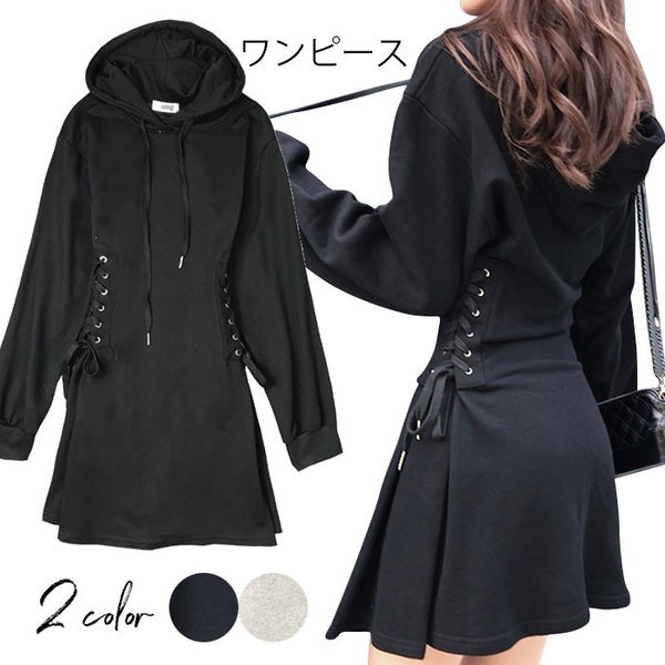 【セール】ワンピース レディース ショートワンピース ミニワンピース パーカーワンピース 長袖 フード付き ストレッチ 伸縮性 ドロスト