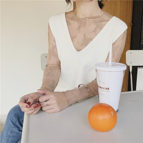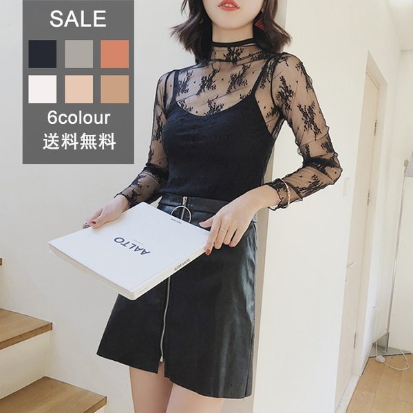 2019夏新作 ブラウス レディース チュールレース レース レースカットソー 長袖 レースブラウス ハイネックブラウス 花柄