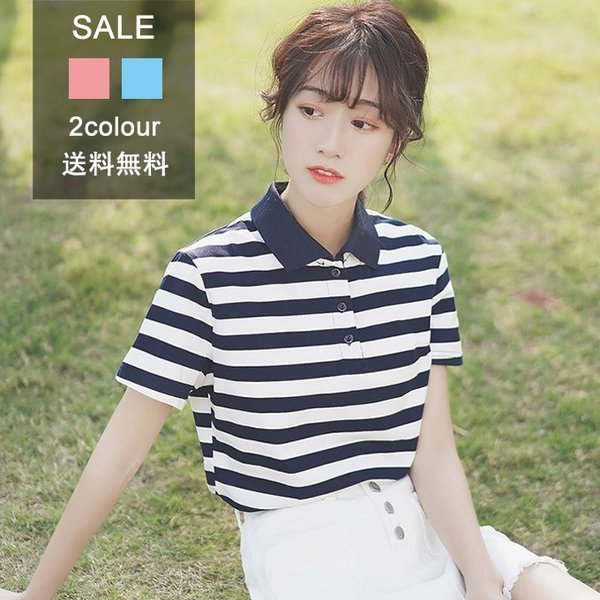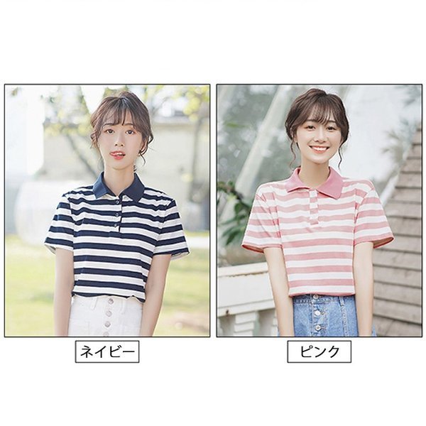 2019夏新作 ポロシャツ レディース 半袖 トップス シャツ 半袖 チュニック トップス ボーダー柄 かわいい カジュアル ス