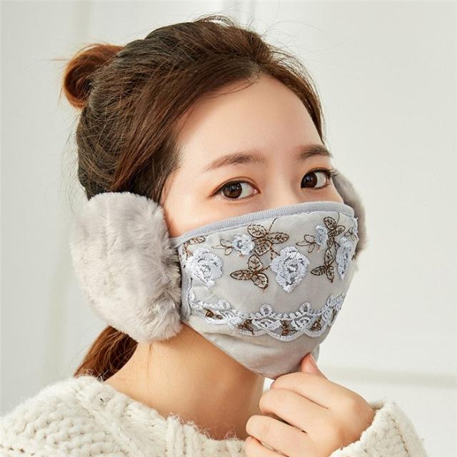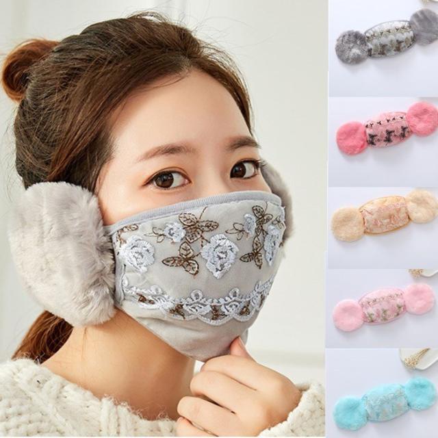 冬用マスク あったかマスク レースマスク 耳カバー イヤーマフ 花柄 洗える 布マスク 秋冬用 冬マスク 女性用 大人用 繰り返し 秋冬 おしゃれ 防寒