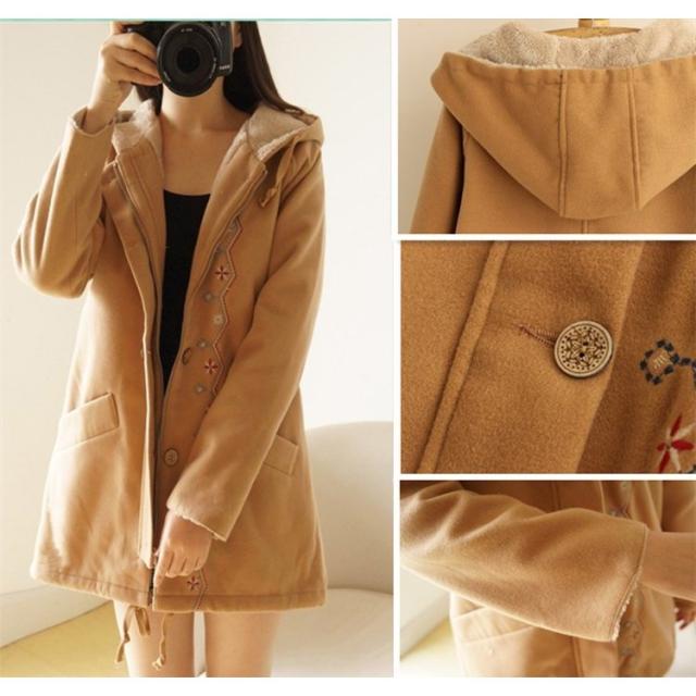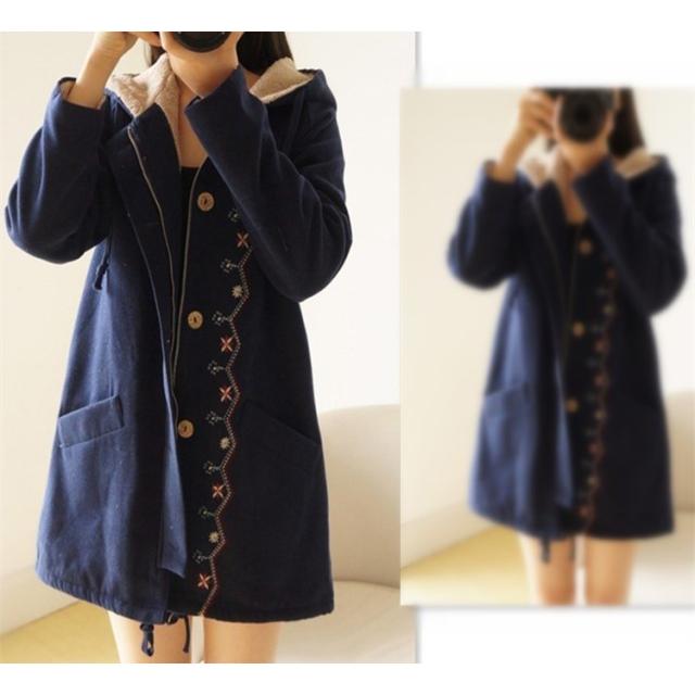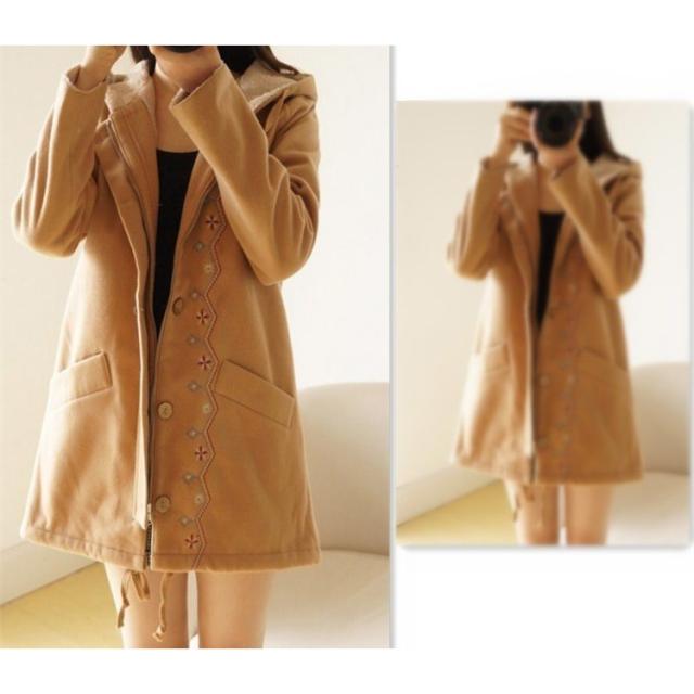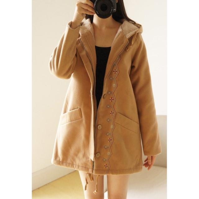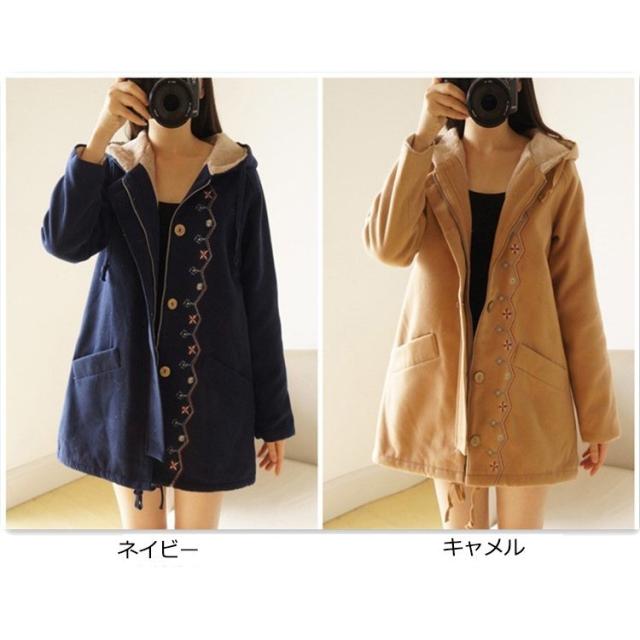ダッフルコート レディース フード付き 刺繍 かわいい コート 秋服 秋冬物 冬服 大きいサイズ 学生 ダッフルコート 可愛い 甘い 着やせ 暖かい 2017新作