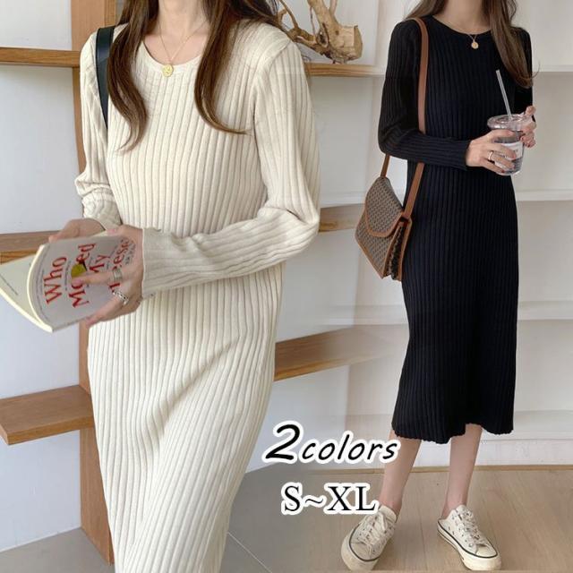 ワンピース レディース 秋 冬 長袖 ニット ワンピース 40代 マキシワンピース 韓国風 ロング ゆったり オシャレ 体型カバー 着痩せ 大きいサイズ 30代 50代