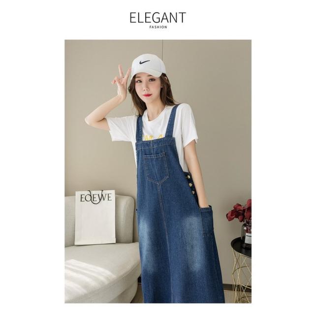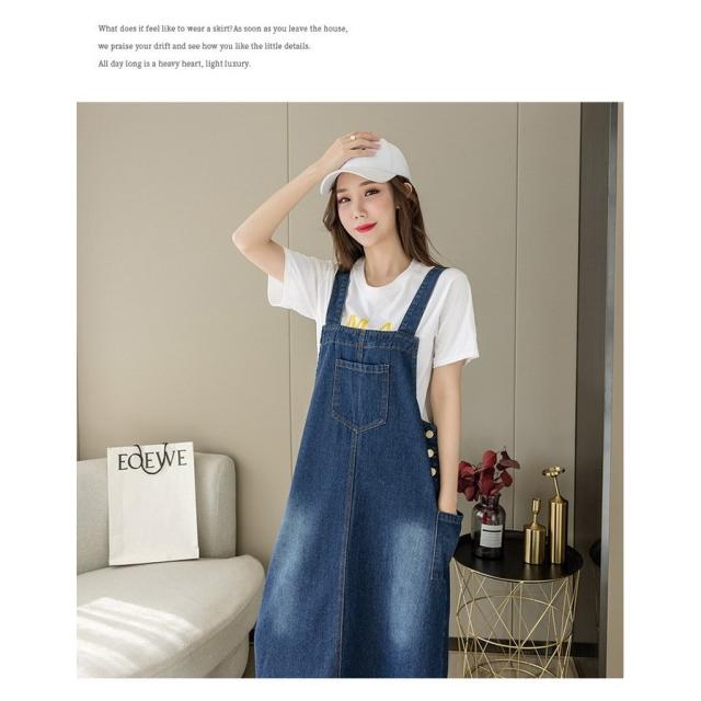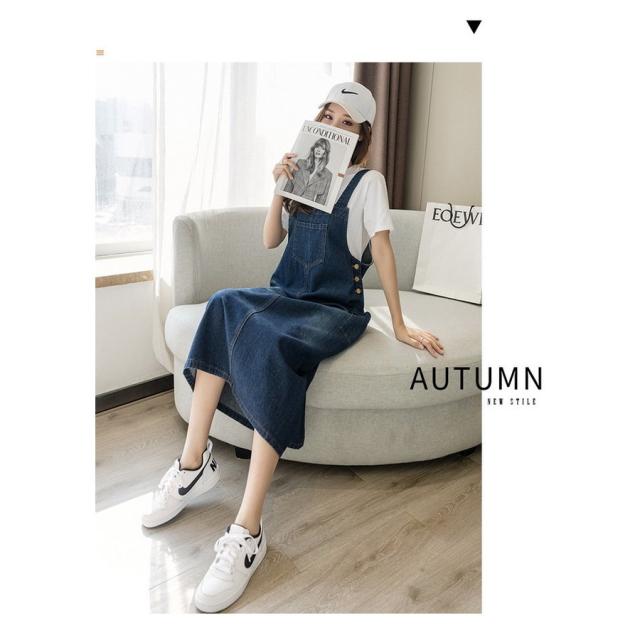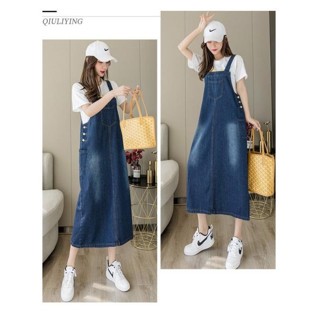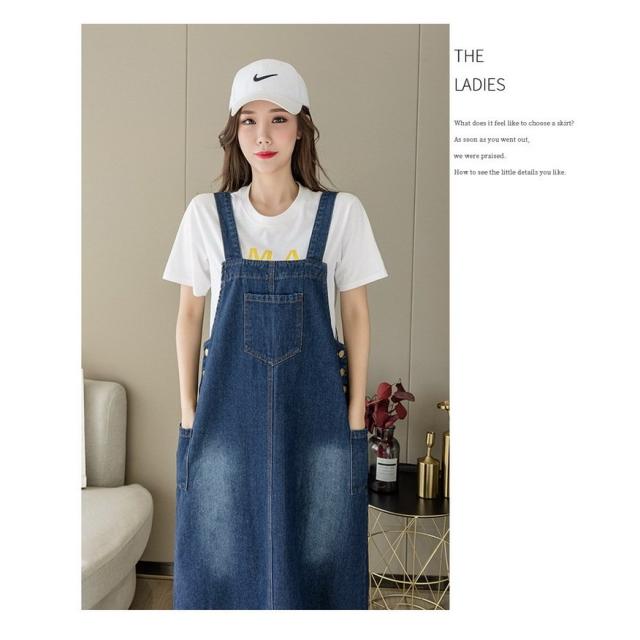 デニム サロペットスカート 大きいサイズ ゆったり 綿 ワンピース Aライン 春秋 ロングワンピース 妊婦服 体型カバー 通勤 オシャレ カジュアル