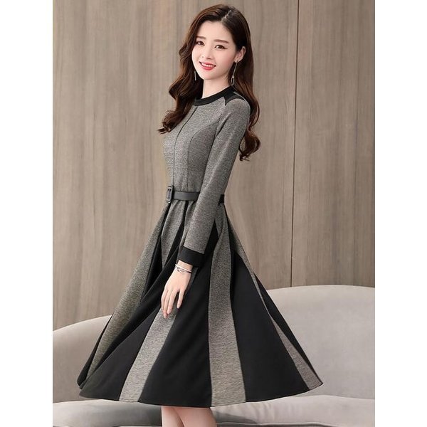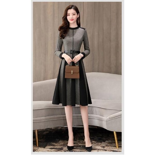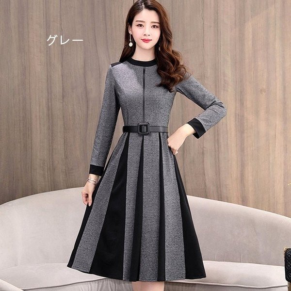 【セール】ワンピース レディース きれいめ ロングワンピース 秋冬 ミモレ丈 長袖 Aラインワンピース 大きいサイズ ベルト付き フォーマ
