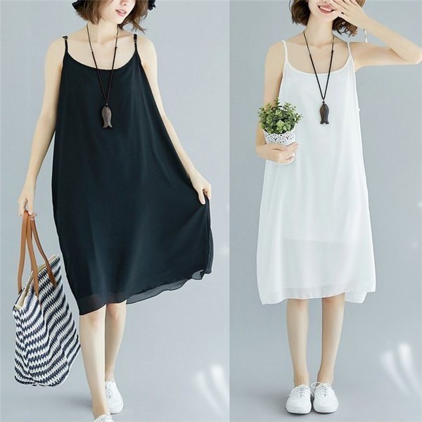 【セール】ワンピース 膝丈ワンピース ミディアムワンピース キャミワンピース ひざ丈 シフォンワンピース 体型カバー 大きいサイズ 夏 ワ