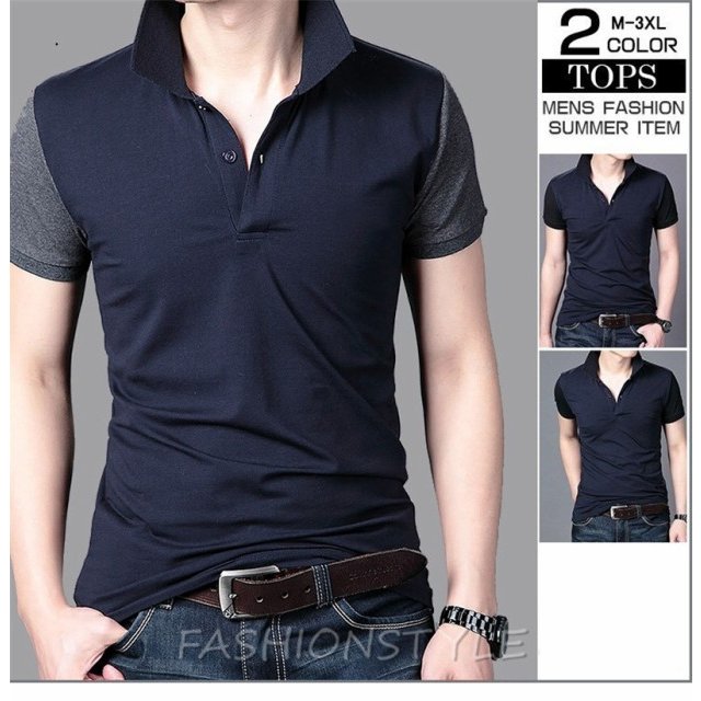 ポロシャツ メンズ 半袖 紳士服 ゴルフウェア 切り替え POLO ポロ スリム トップス 夏服 半袖ポロ ゴルフ ビジネ