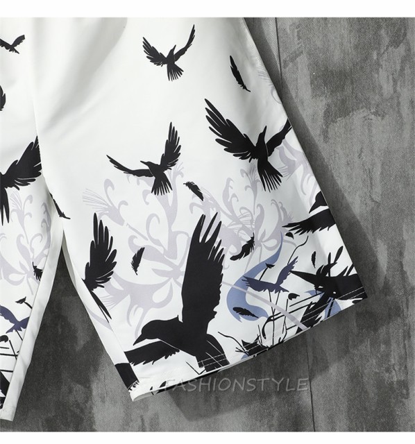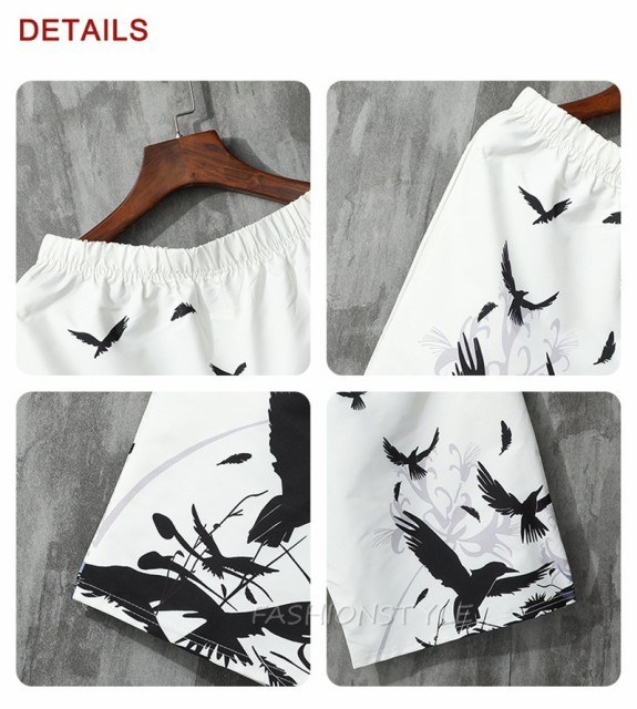 ショートパンツ 浴衣風 花柄 鳥柄 甚平風 和風 メンズ 甚平 ハーフパンツ カジュアル メンズボトムス 春夏秋 花火