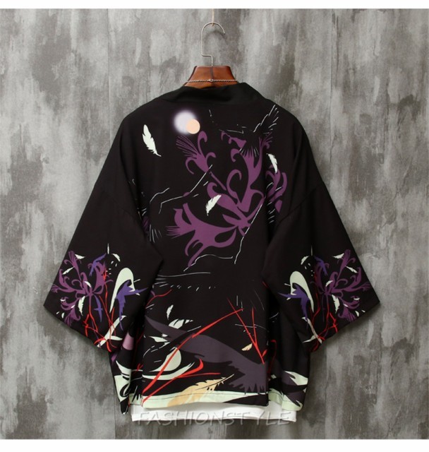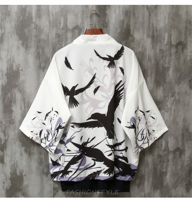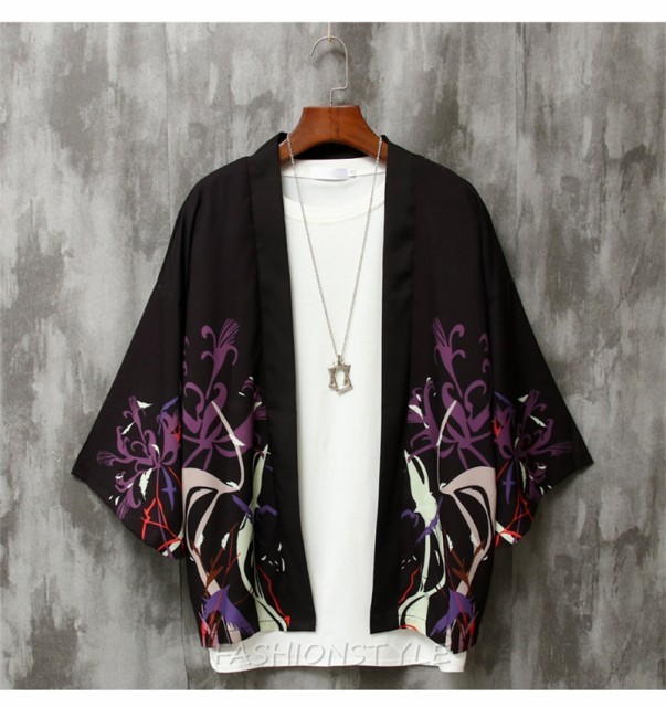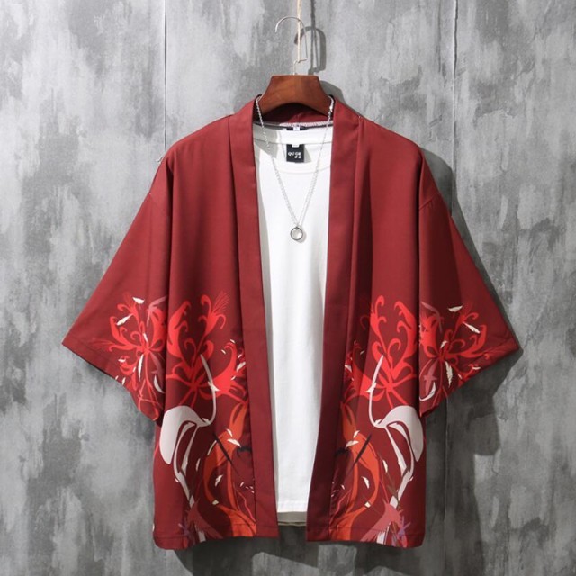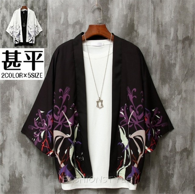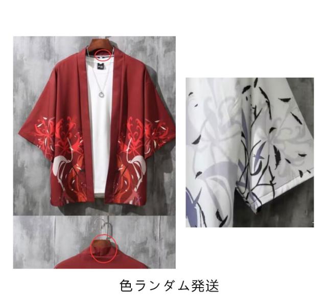 カーディガン 浴衣風 花柄 鶴柄 甚平風 和風 メンズ アウター 着物 甚平 七分袖 カジュアル メンズトップス 春夏