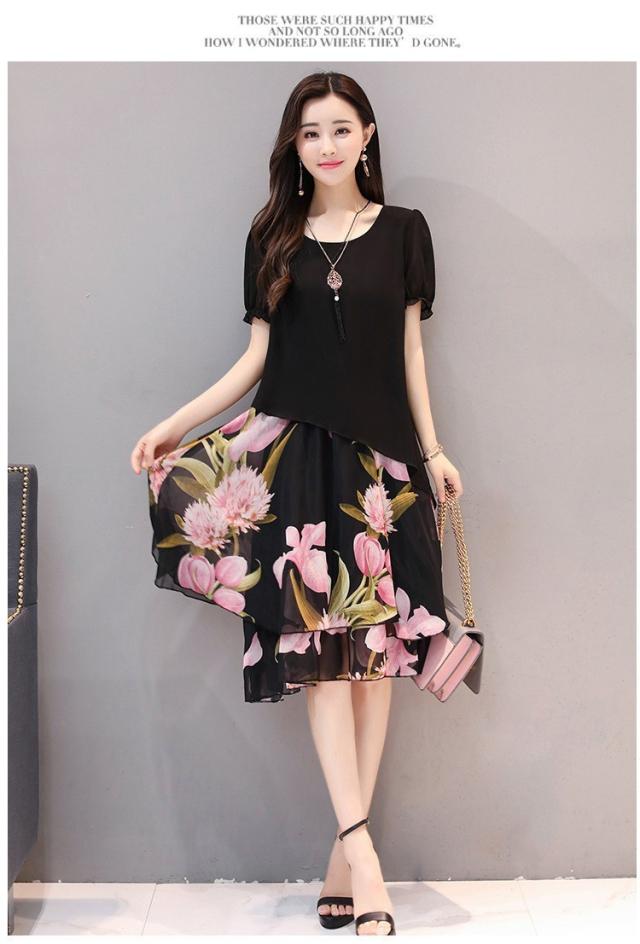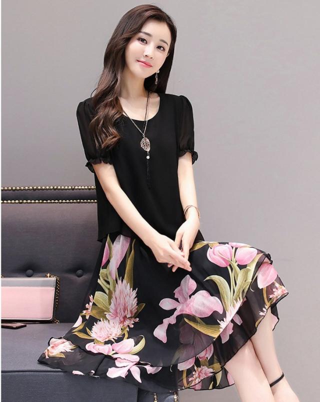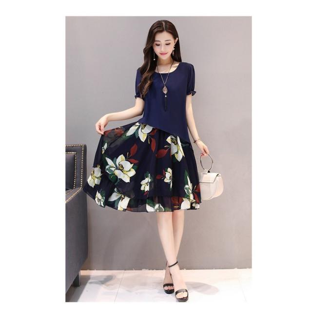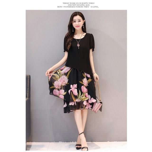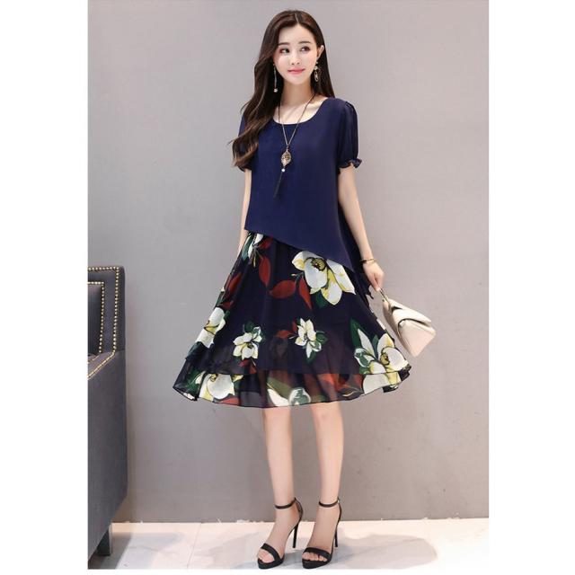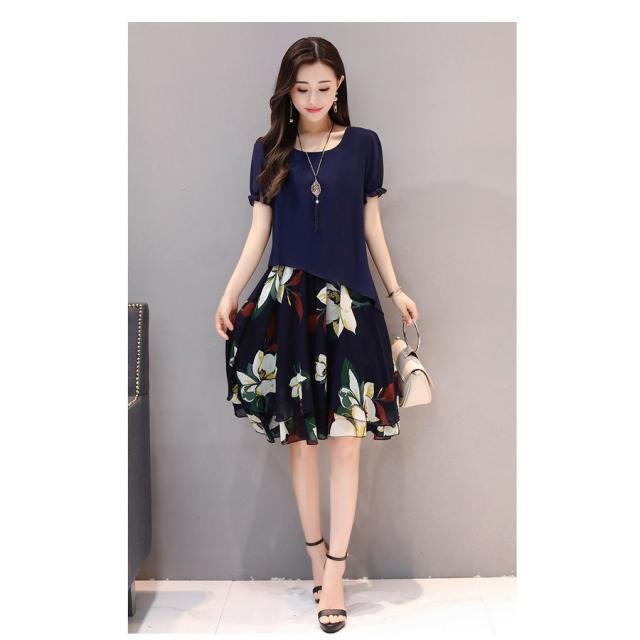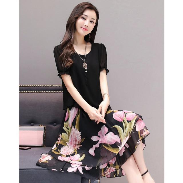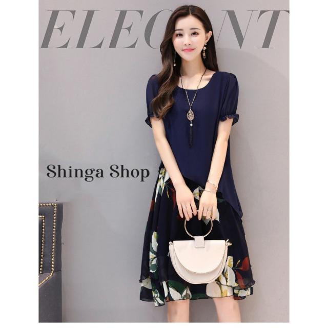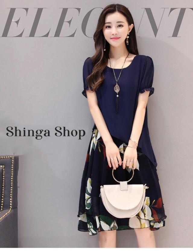 ワンピース ワンピース 体型カバー レディース シフォンワンピース 膝丈 ドッキング 花柄 半袖 フォーマルワンピース 着痩せ 夏ワンピース