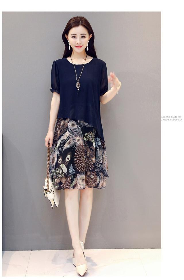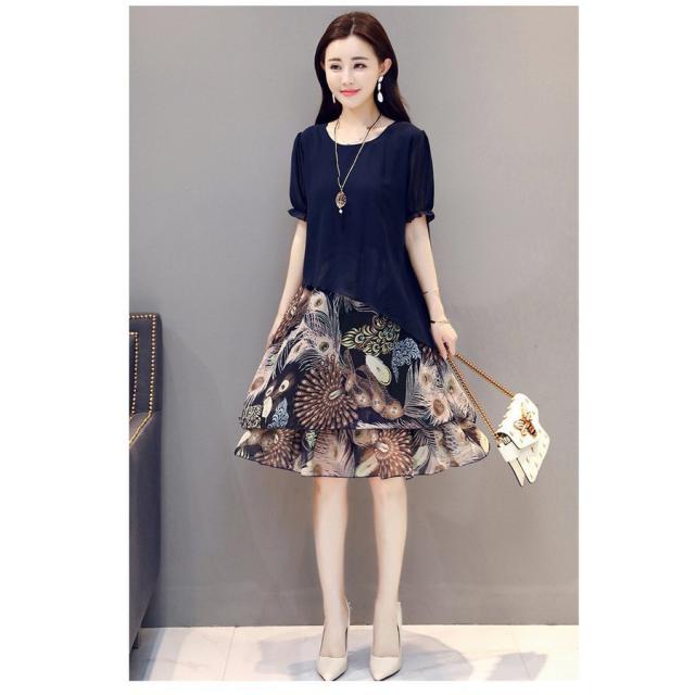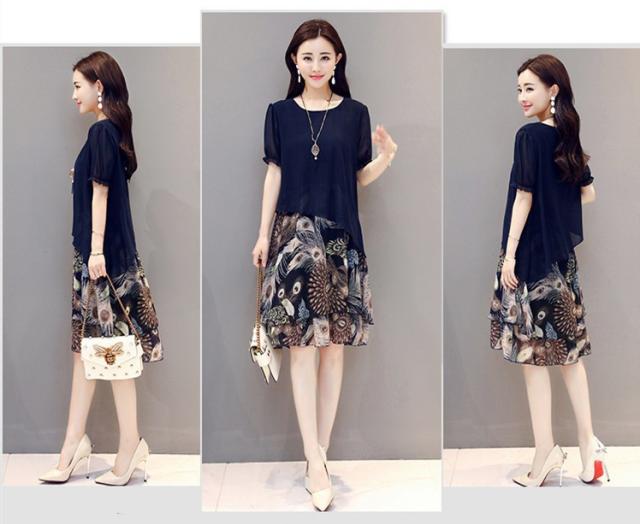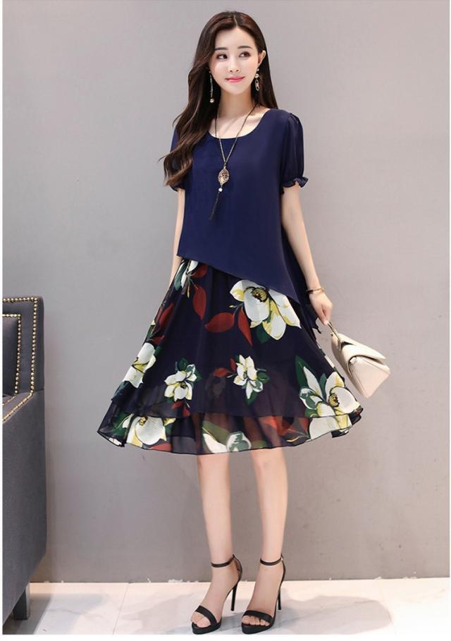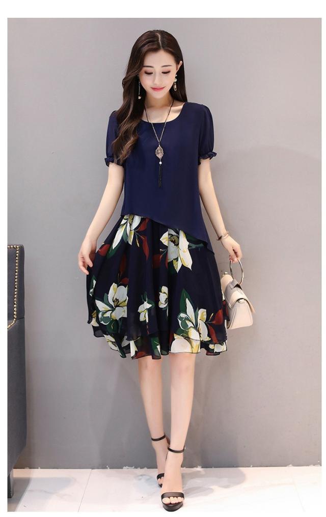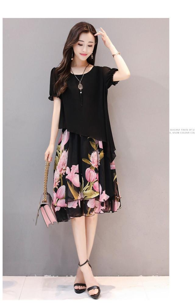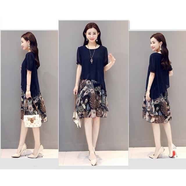 ワンピース ワンピース 体型カバー レディース シフォンワンピース 膝丈 ドッキング 花柄 半袖 フォーマルワンピース 着痩せ 夏ワンピース