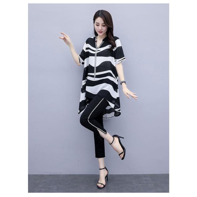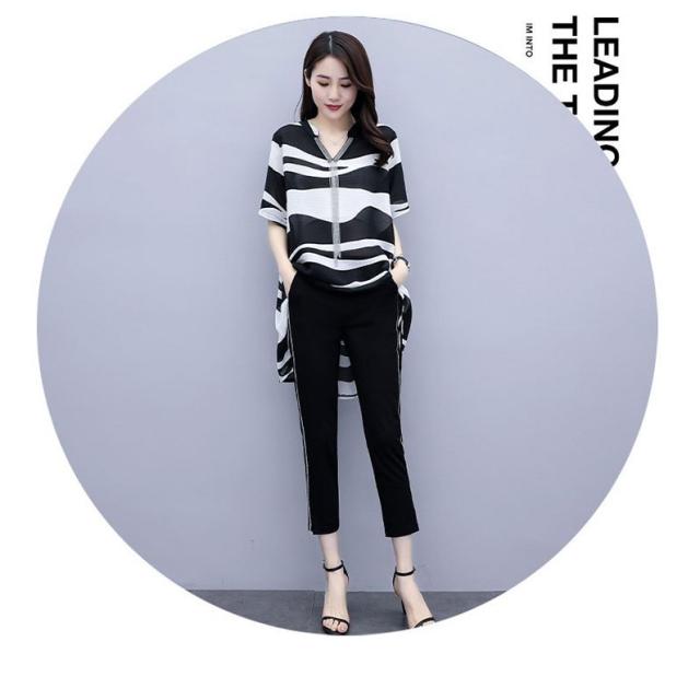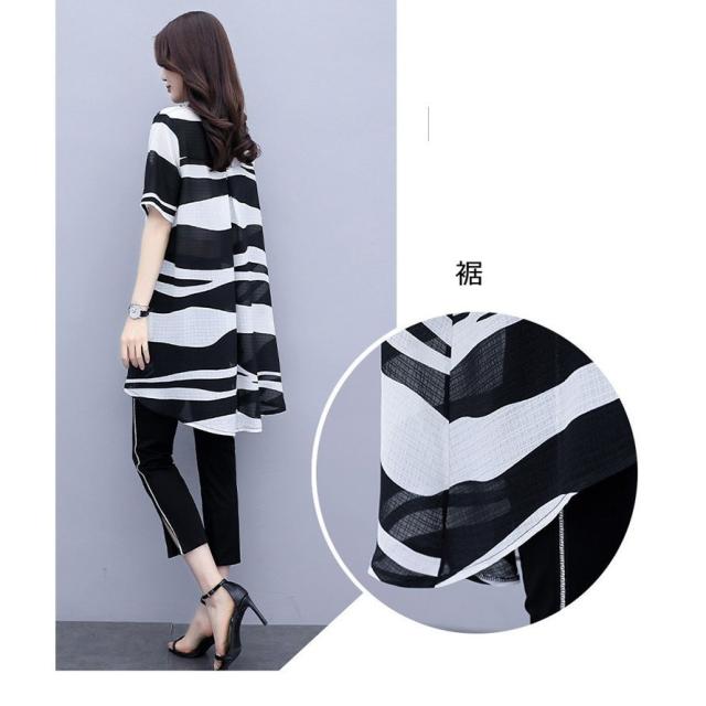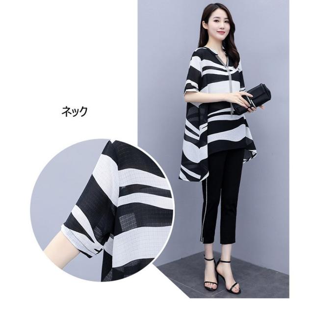セットアップ レディース 春夏 オシャレセットアップ 半袖Tシャツ七分丈パンツ シフォン 大きいサイズ2点セット カジュアル 韓国風 通勤 40代