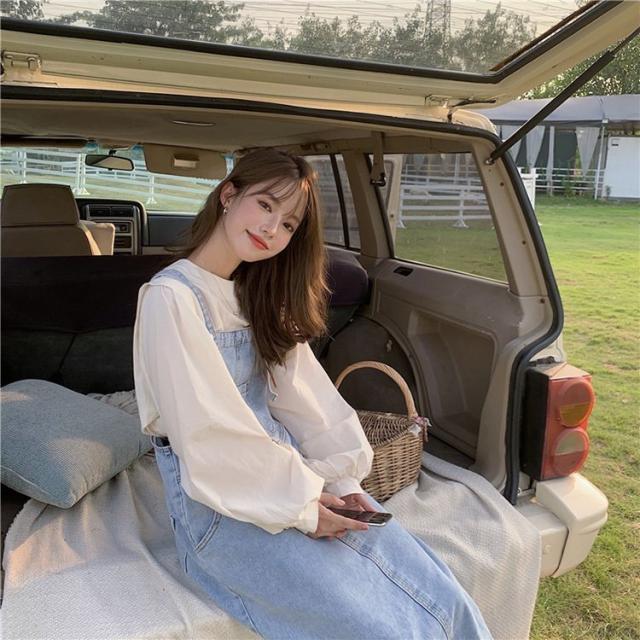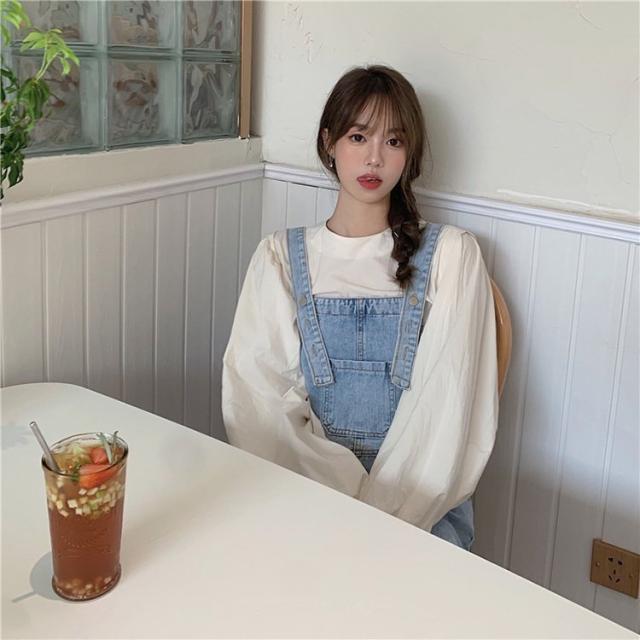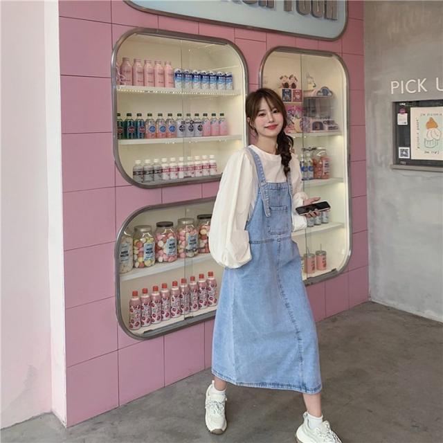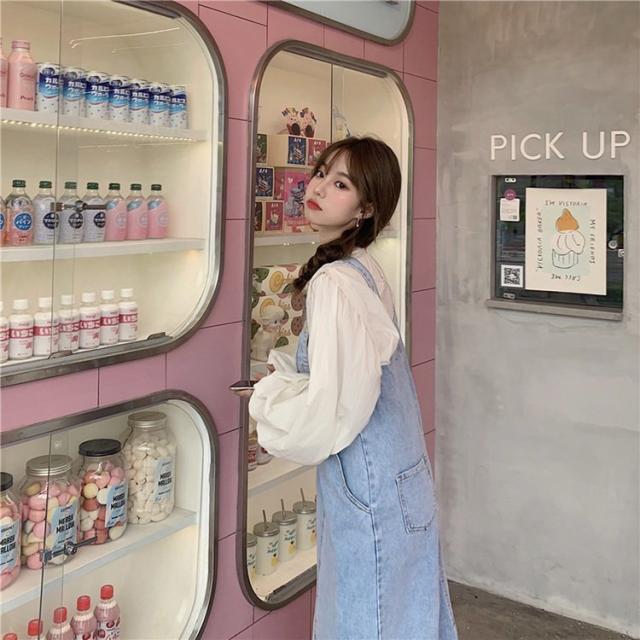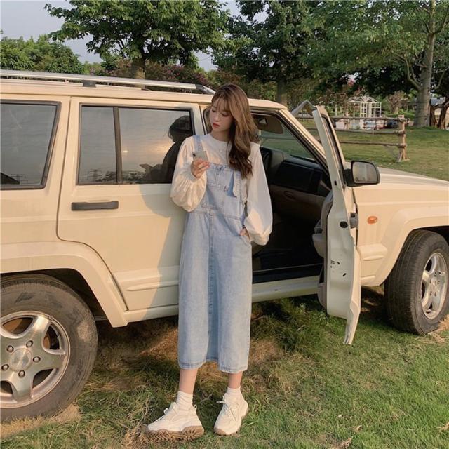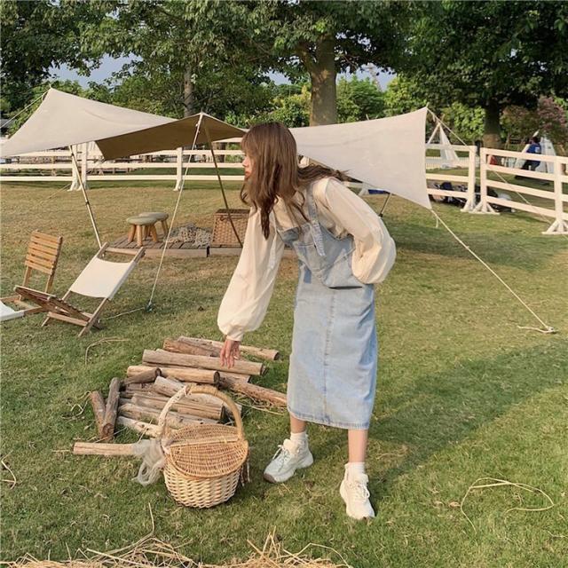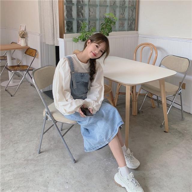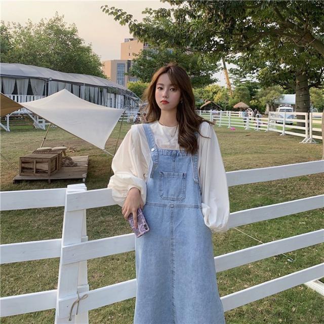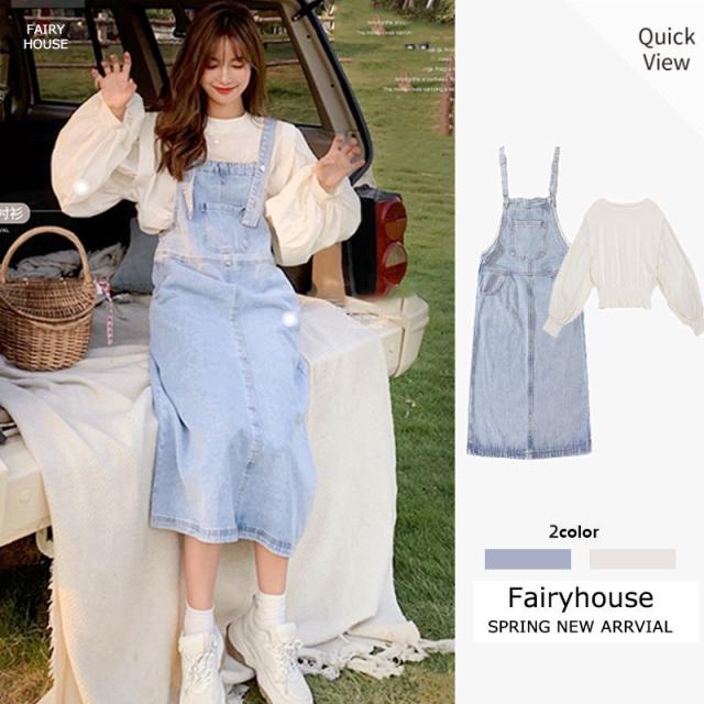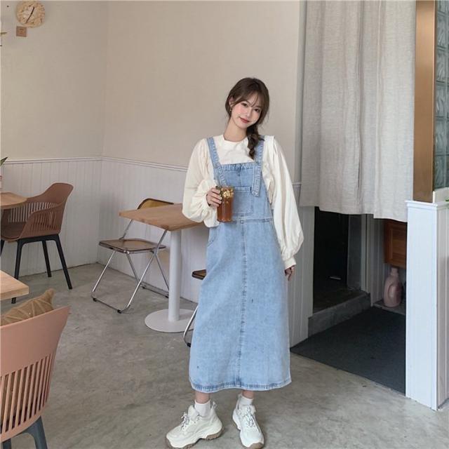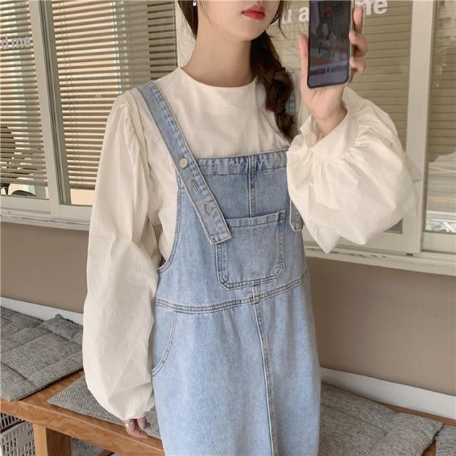 デニムサロベットスカート レディース 40代 デニムスカート 春夏秋 長袖ブラウス ロング丈ワンピース 妊婦服 体型カバー カジュアル韓国風セットアップ ゆったり