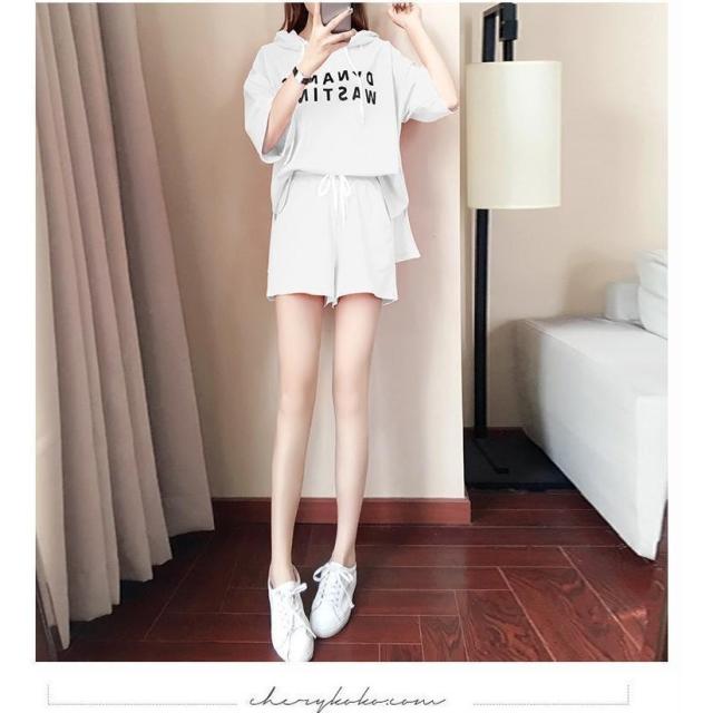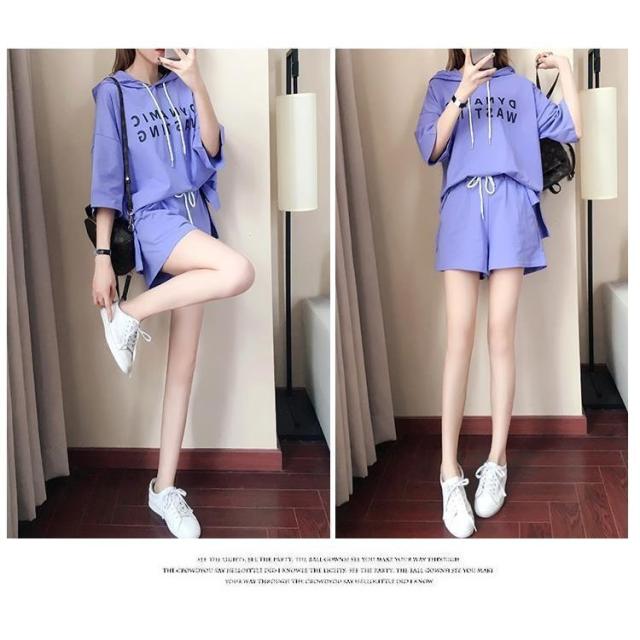 セットアップ レディース 春夏 スウェットセット スポーツウェア 2点セット 半袖パーカー ショット丈パンツ フード付き ジャージセットアップ 部屋着 カジュアル