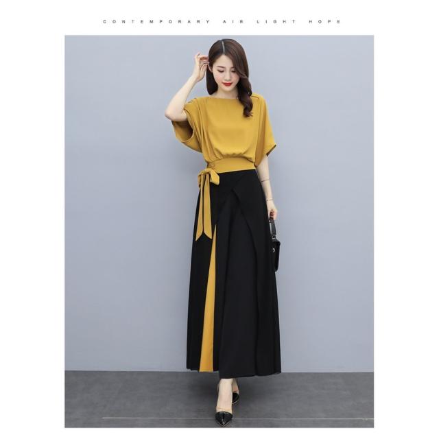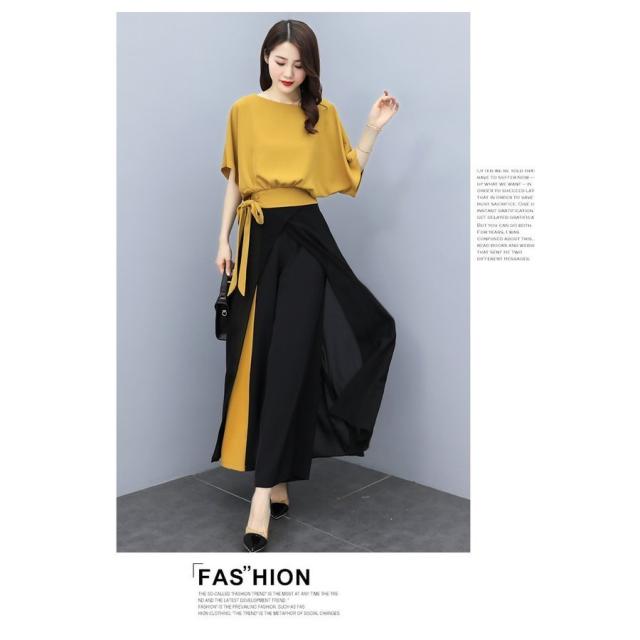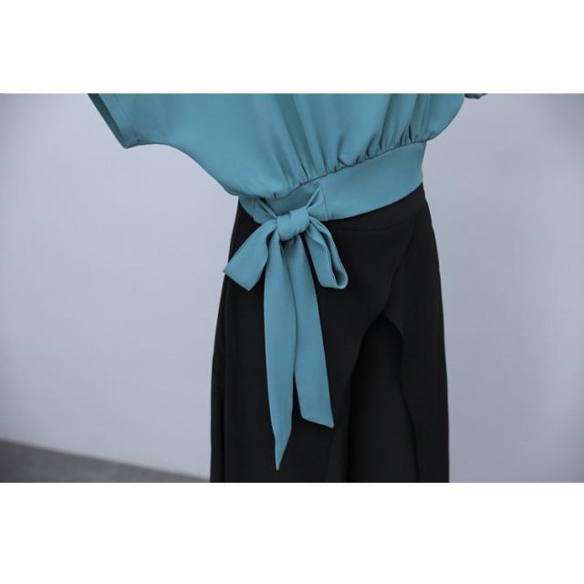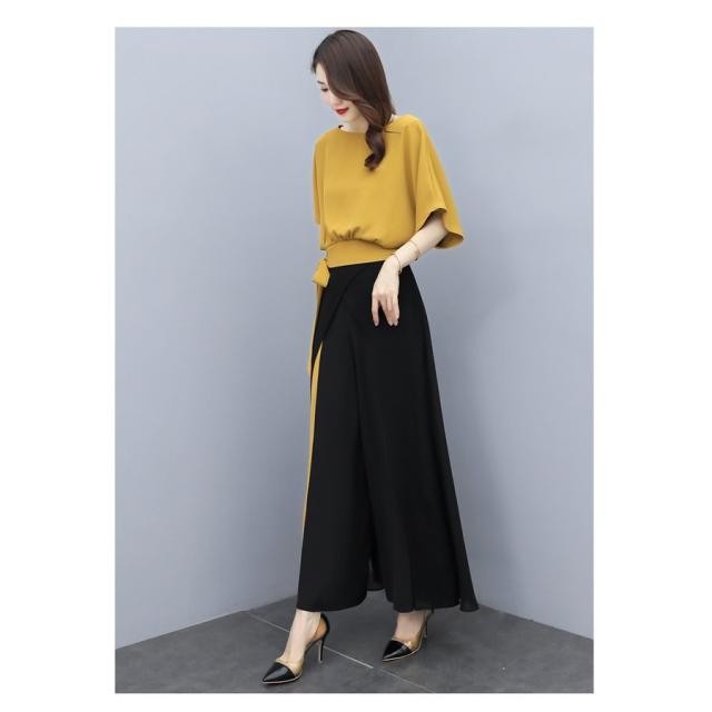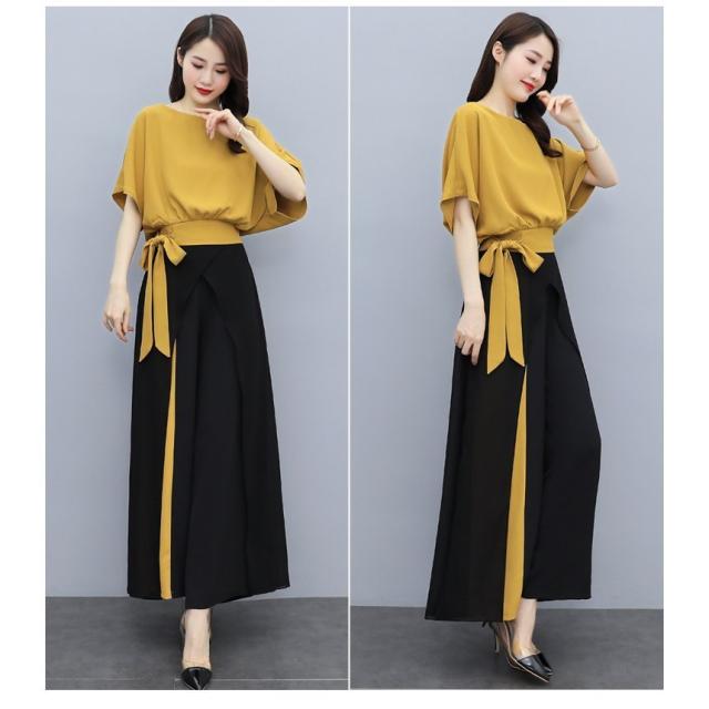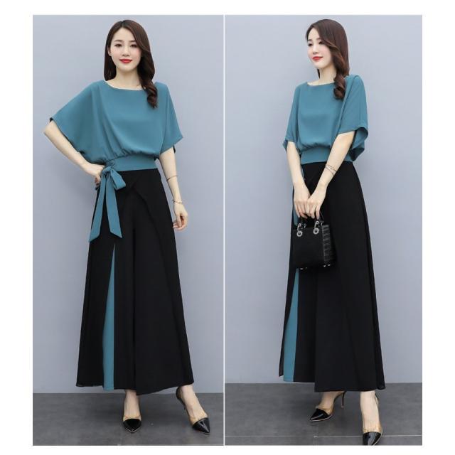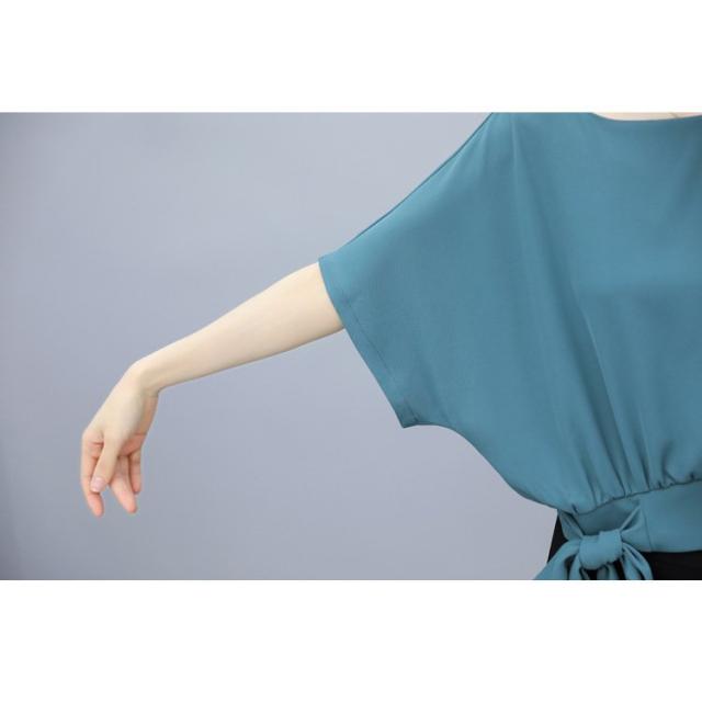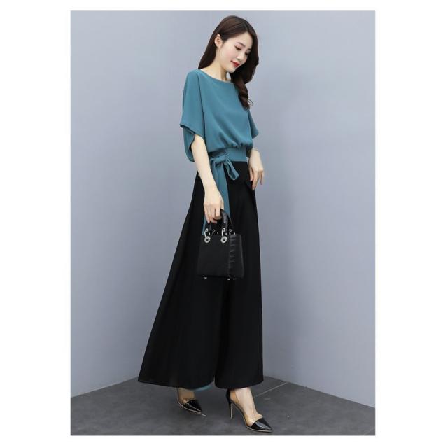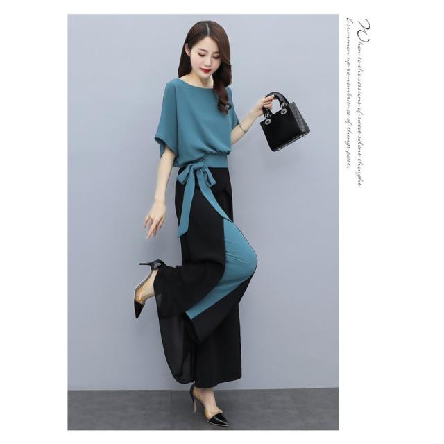 セットアップ レディース 春夏 オシャレセットアップ 半袖ブラウス 九分丈ワイドパンツ シフォン上下セット 韓国風 通勤OL 30代40代 50代大きいサイズ