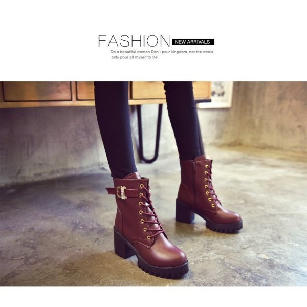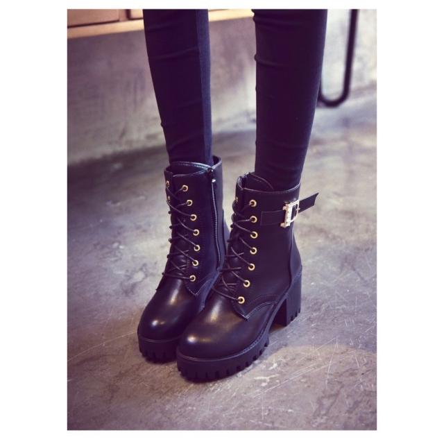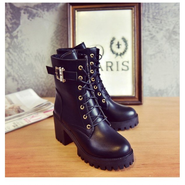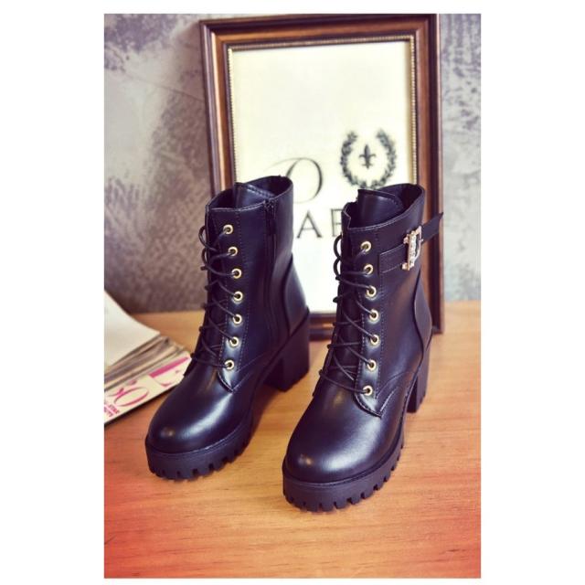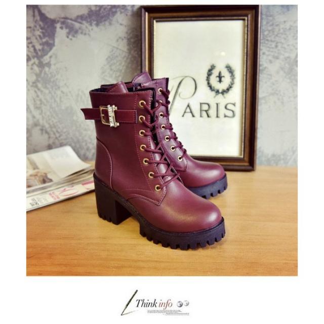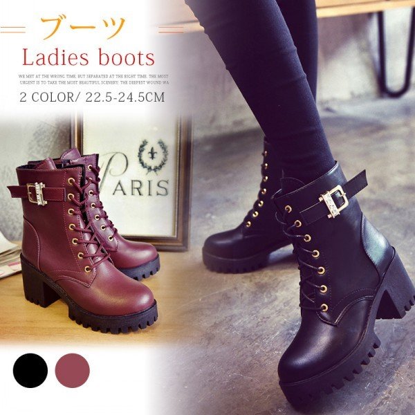 ブーツ ジョッキーブーツ ショートブーツ 短靴 ハイヒール 太ヒール エナメル レースアップ サイドファスナー レディース 秋 春 冬 雪道対応