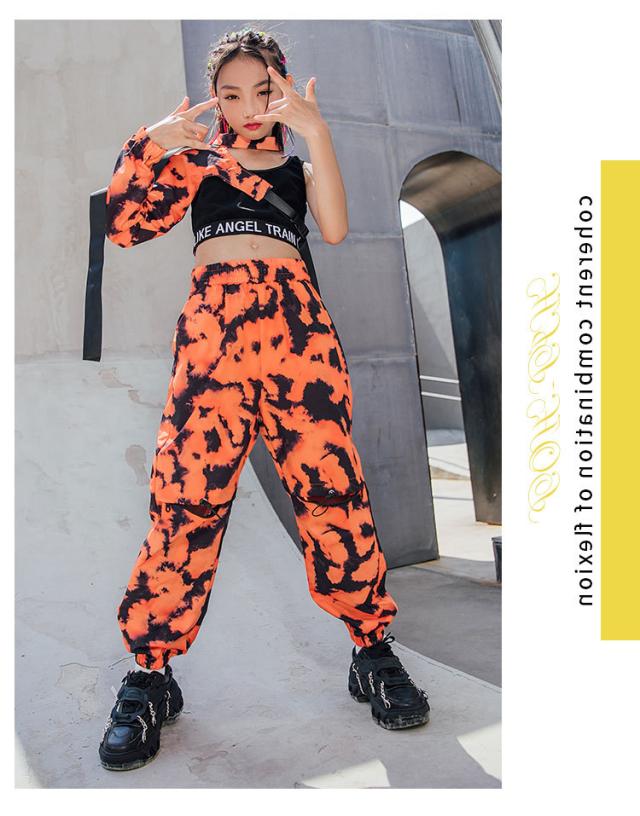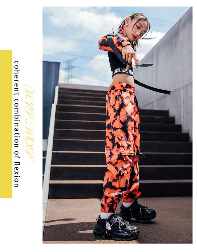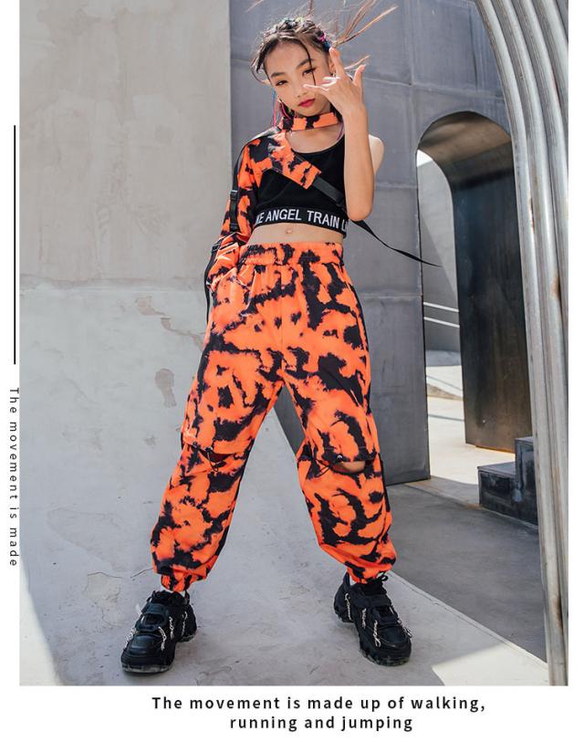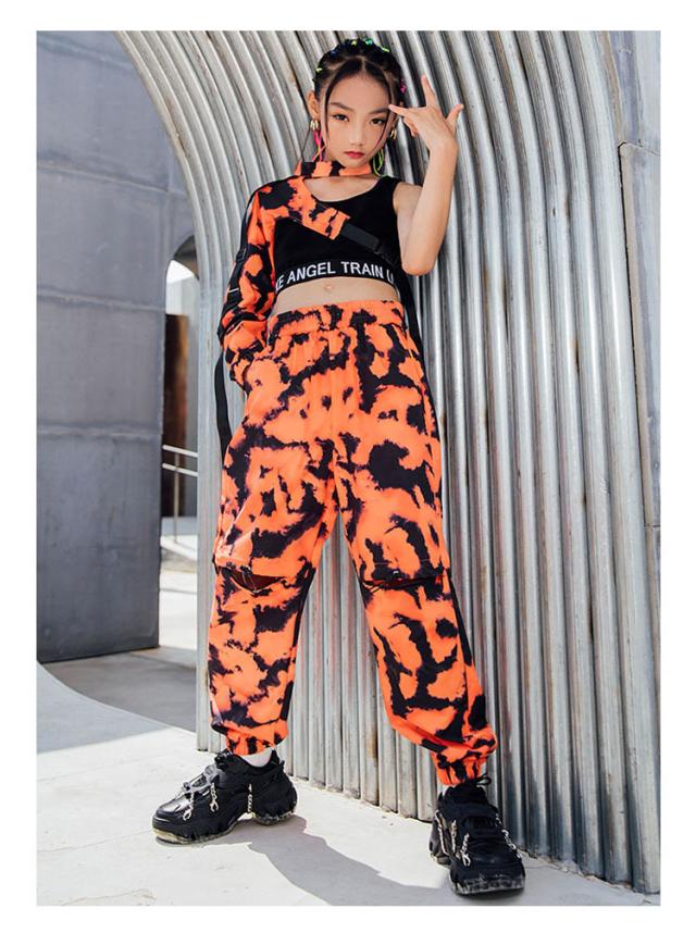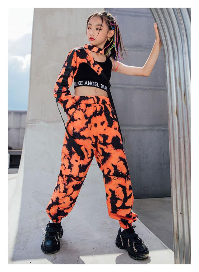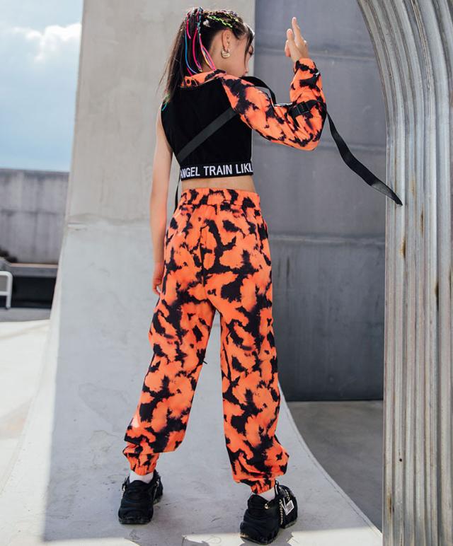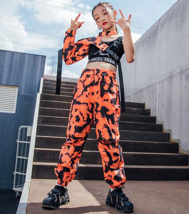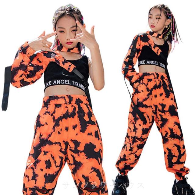 キッズ ダンス衣装 迷彩柄 へそ出し ヒップホップ 袖 タンクトップ パンツ 長ズボン ダンスウェア かっこいい 子供 ステージ衣装 韓国 団体服 発表会