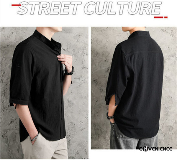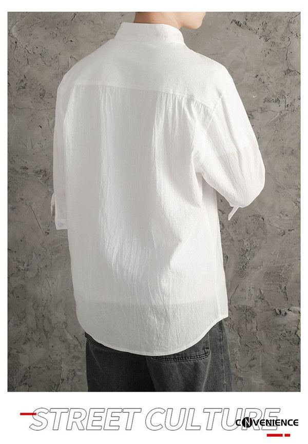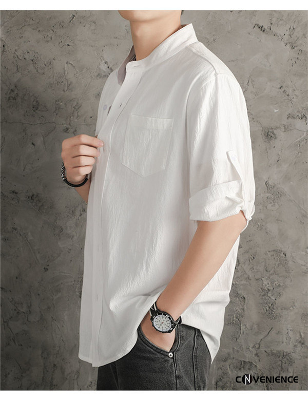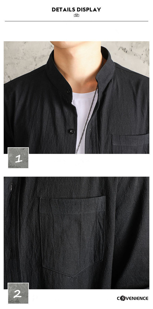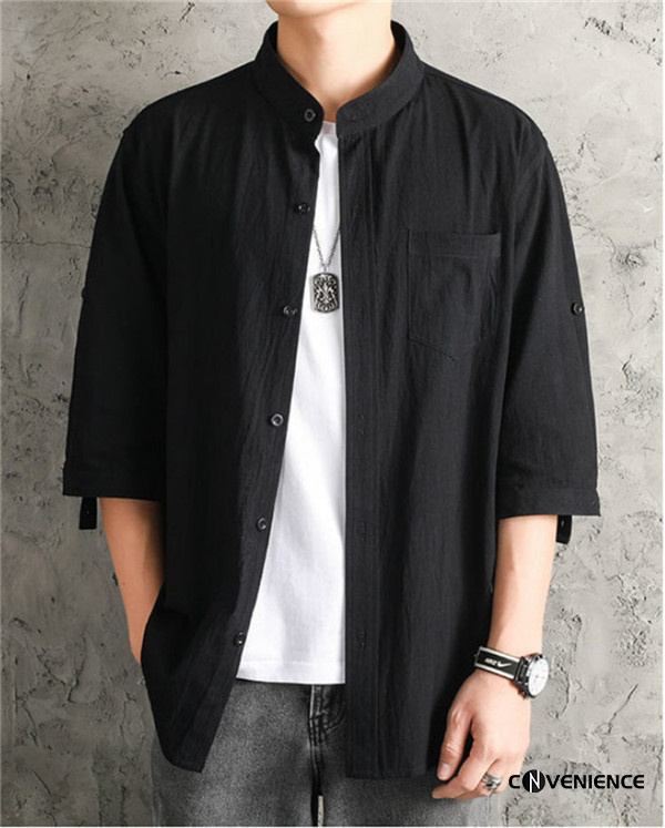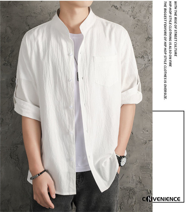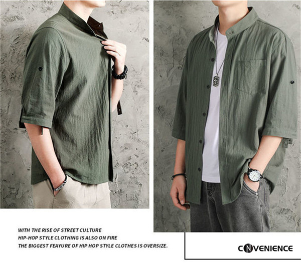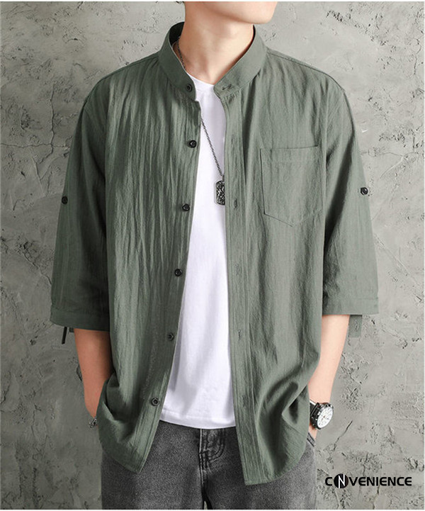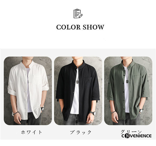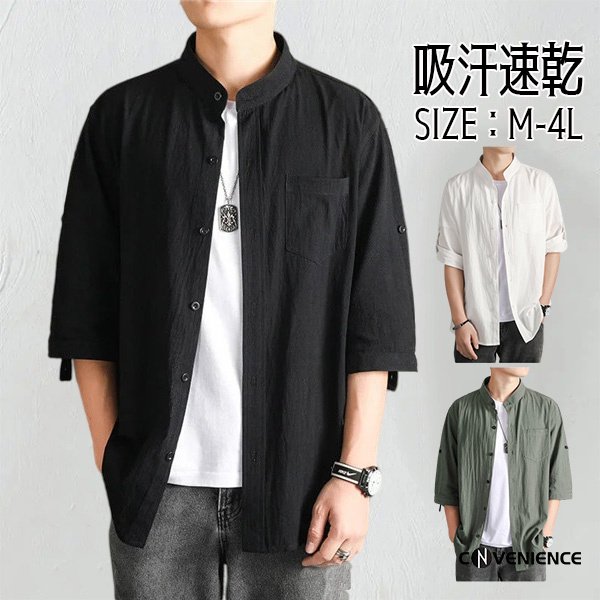 シャツ カジュアルシャツ メンズ 七分袖 五分袖 半袖 綿麻シャツ リネン ボタンダウンシャツ 大きいサイズ スタンドカラー 立ち襟 おしゃれ 夏服