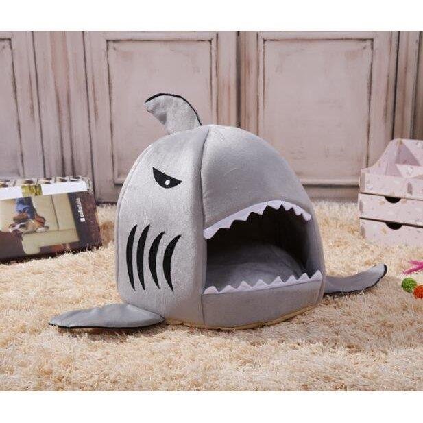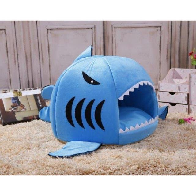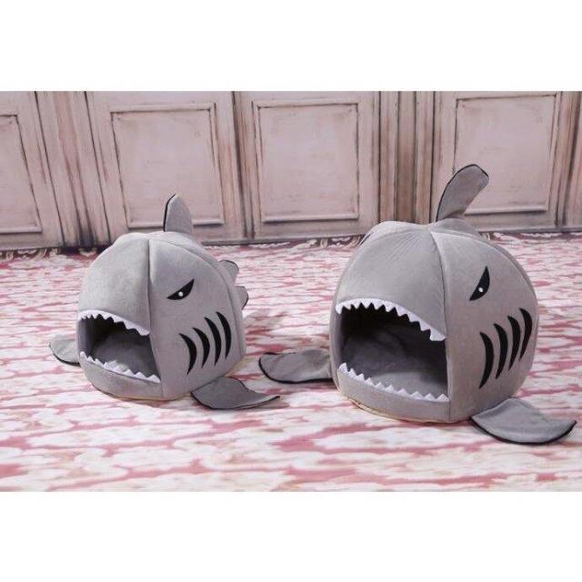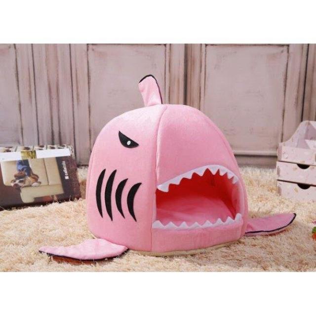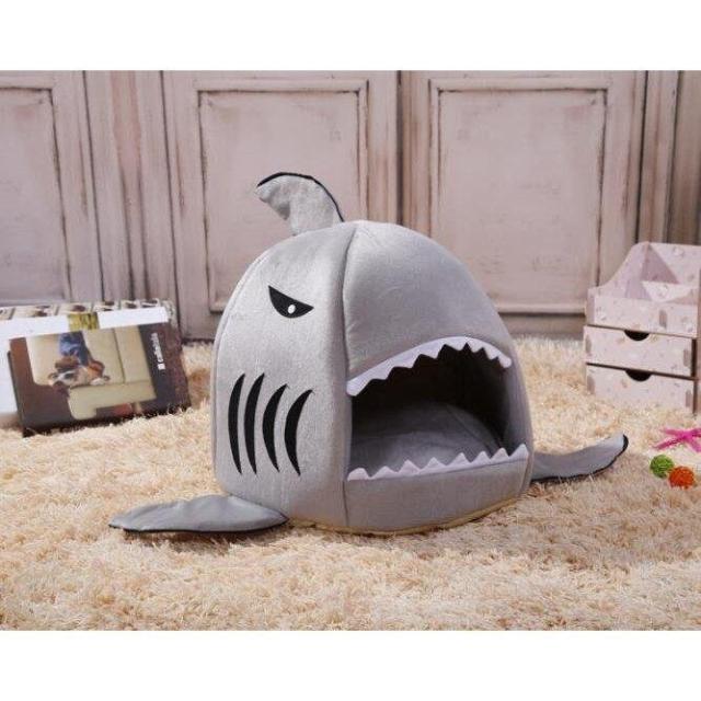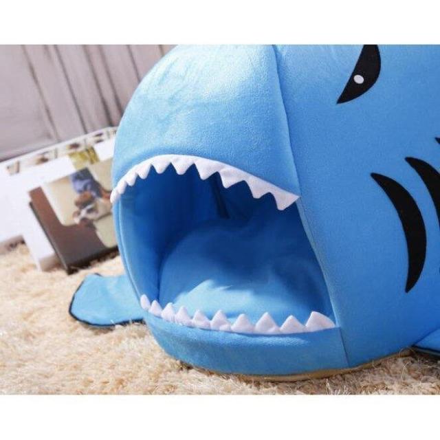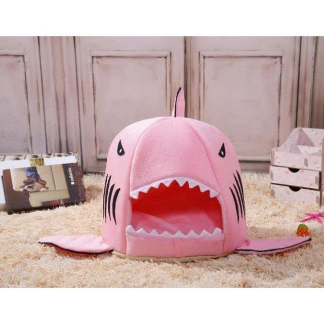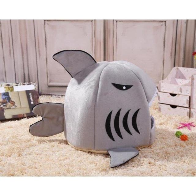 猫 ハウス ペット ハウス サメ型 鮫型 犬 猫用 ベッド ペットベッド ドーム型 ソファ 室内用 マット付き 小動物 兼用