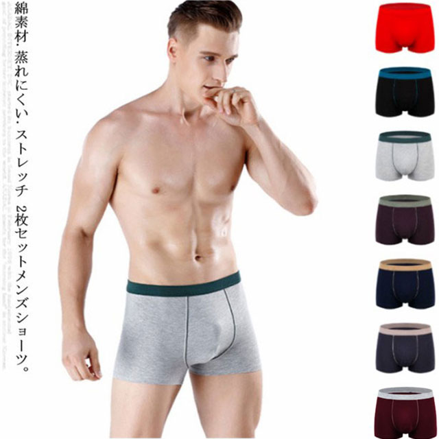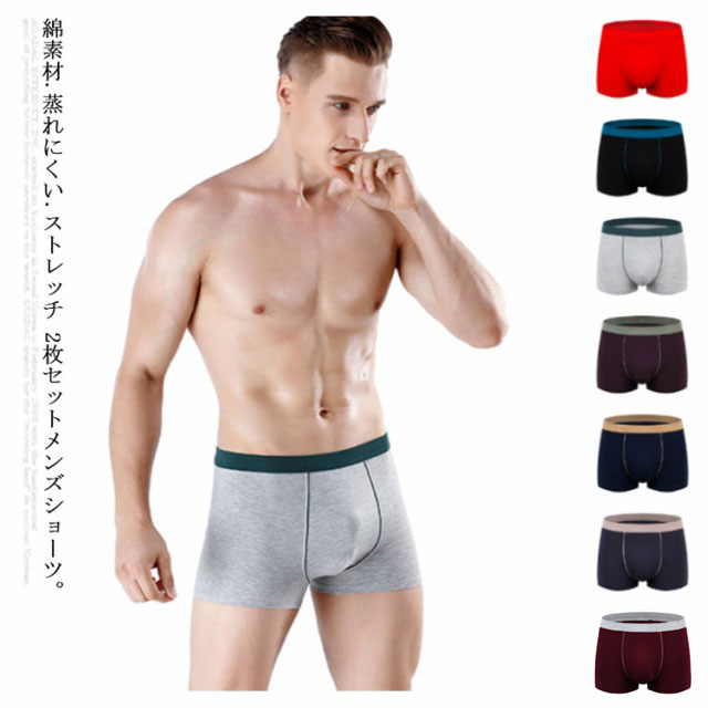 送料無料 ボクサーパンツ 綿 コットン メンズ 2枚セット ボクサーブリーフ ショーツ 下着 無地 トランクス インナー アンダーウェア パンツ 男性下着 通気性 蒸れにくい 速乾 ストレッチ シンプル ビッグサイズ対応 男性用 父の日 プレゼント