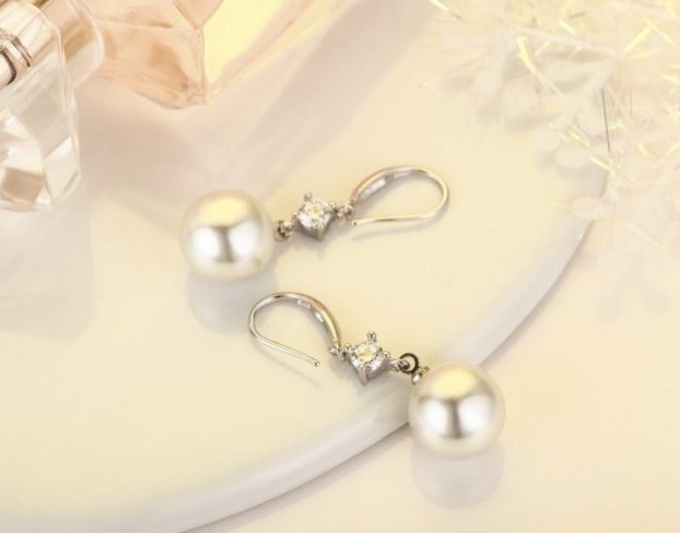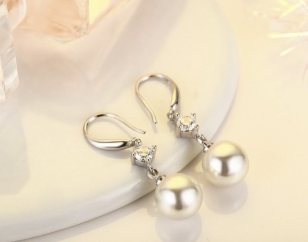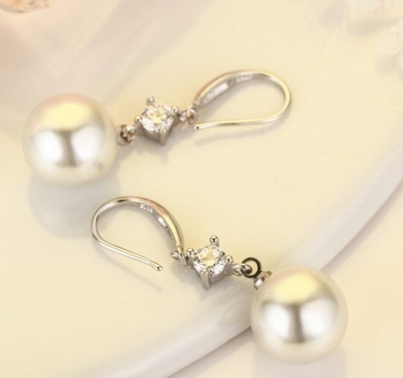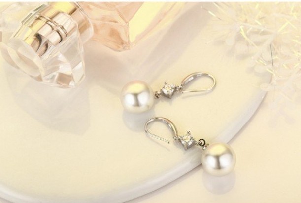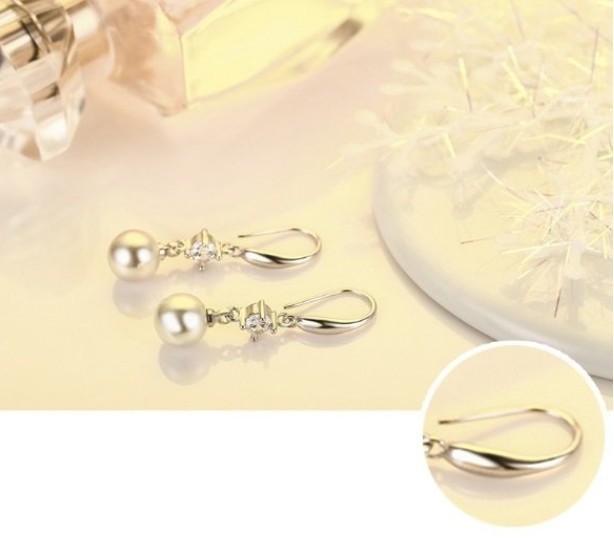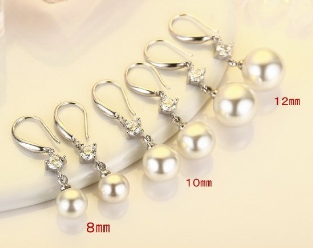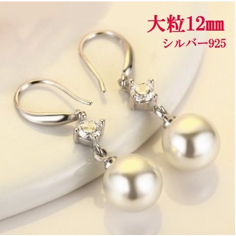ピアス レディース 大粒パール12mm ジルコニア czダイヤ 結婚式 ロングフック シルバー925