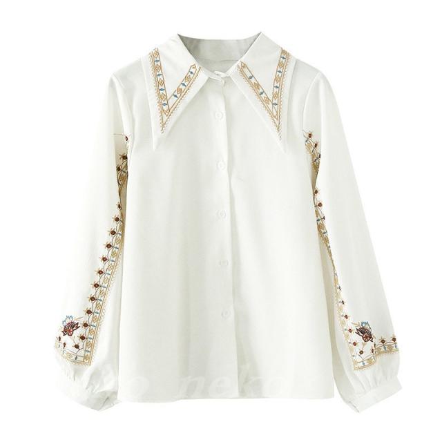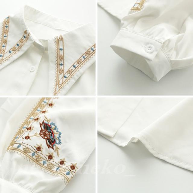 レディース 長袖 ブラウス シャツ トップス とろみシャツ 刺繍 ゆったり カジュアル 前開き ブラウス 30代 40代 オフィス 通勤OL 二次会 パーティー 春秋