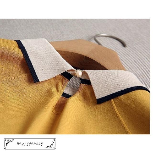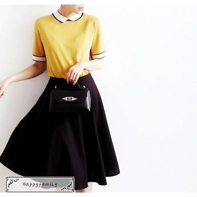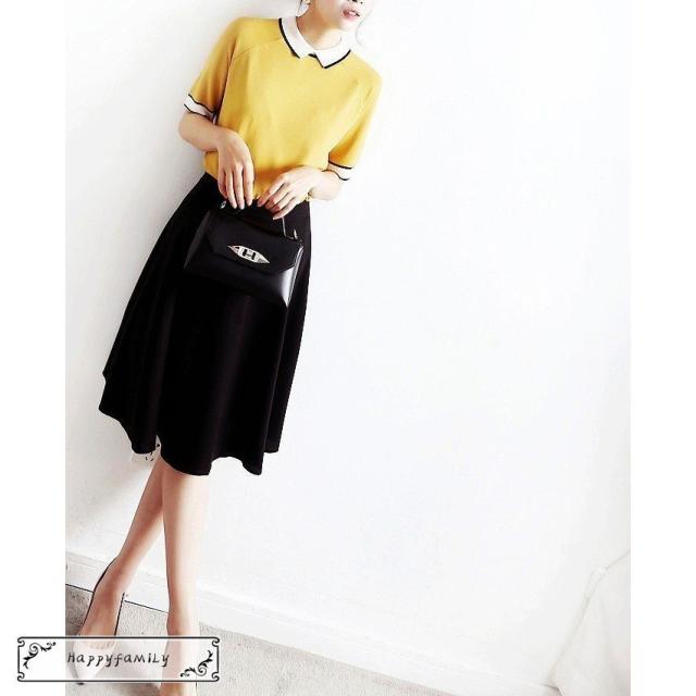 無地/シンプル サマーニット 襟付き 半袖 黄色 イエロー きれいめ 夏 母親 大きいサイズ レディース チュニック ブラウス シャツ トップス