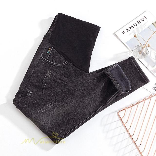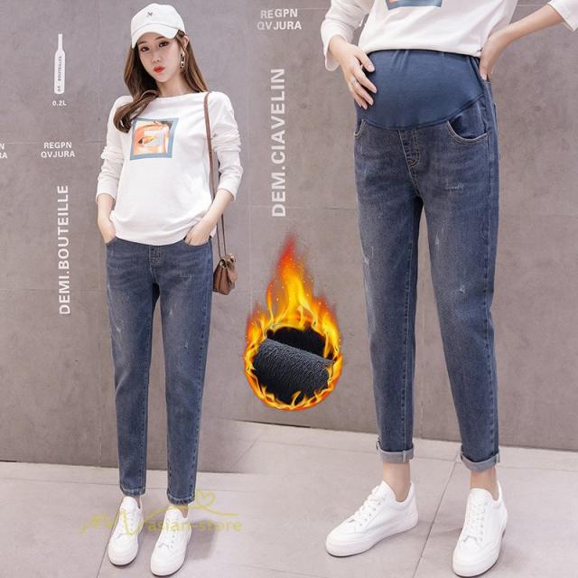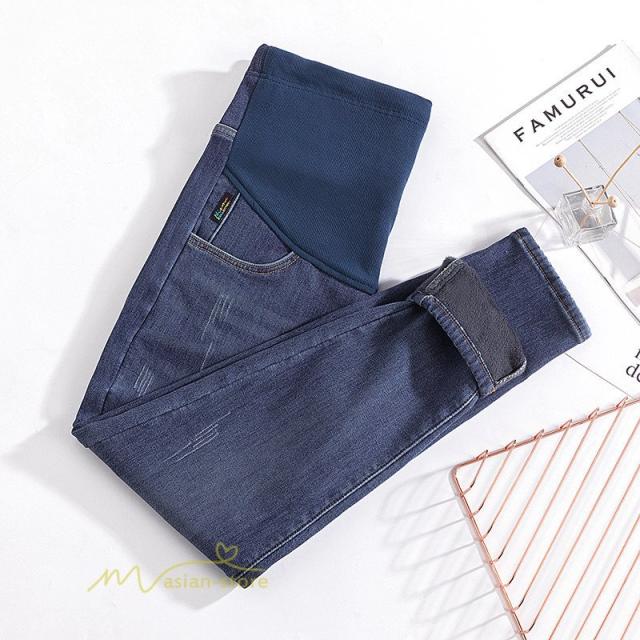 マタニティ デニム パンツ ズボン おしゃれ 妊婦服 裏起毛 ストレッチ 妊婦 保暖 マタニティファッション ウエスト調節 妊娠 足長 効果 秋冬 無地 カジュアル