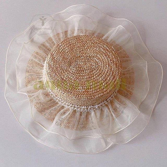 女の子 麦わら帽子 UVカット 紫外線対策 つば広 春夏 子供 キッズ 帽子 お姫様 レース おしゃれ 可愛い 夏用 つば広帽子 日よけ 日焼け防止 カンカン帽