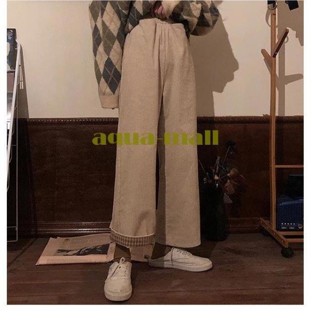 ワイドパンツ レディース コーデュロイパンツ ゆったり 秋 ロングパンツ 冬 ガウチョパンツ コーデュロイ 長ズボン ウエストゴム カジュアルパンツ