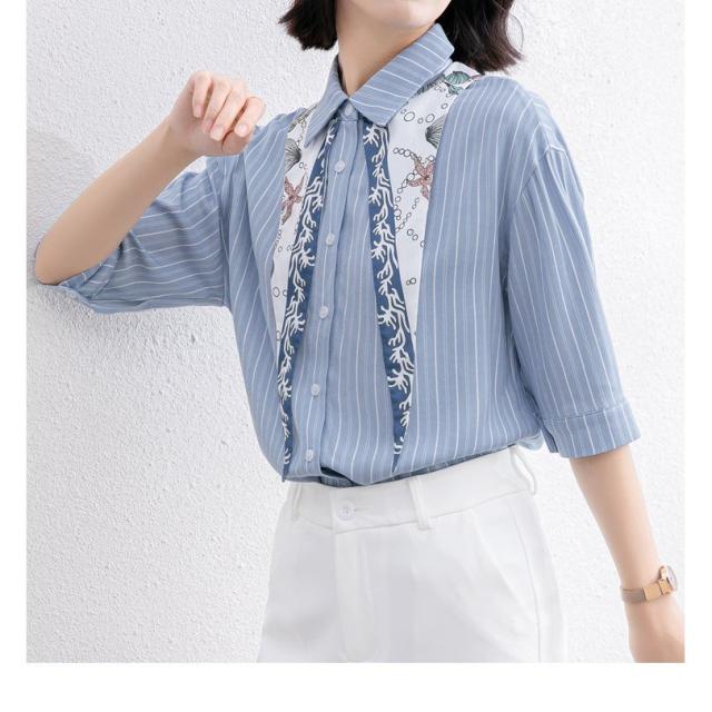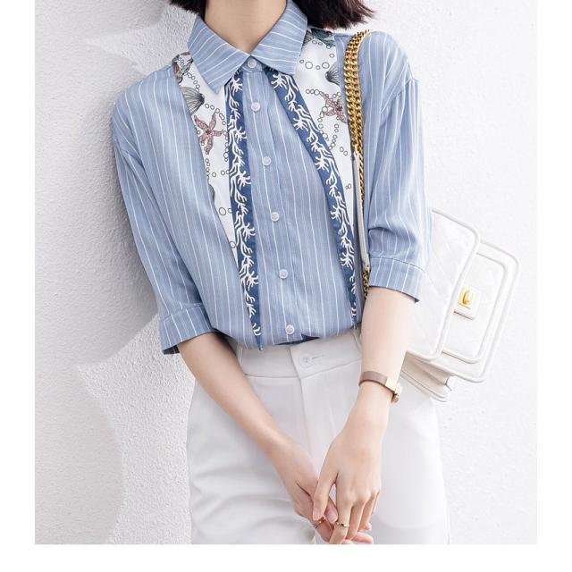 ブラウス レディース きれいめ 40代 春夏 上品 レース花刺繍ブラウス 白シャツ vネックトップス 五分袖 ゆったり オシャレ 韓国風 大人 Tシャツ30代 50代