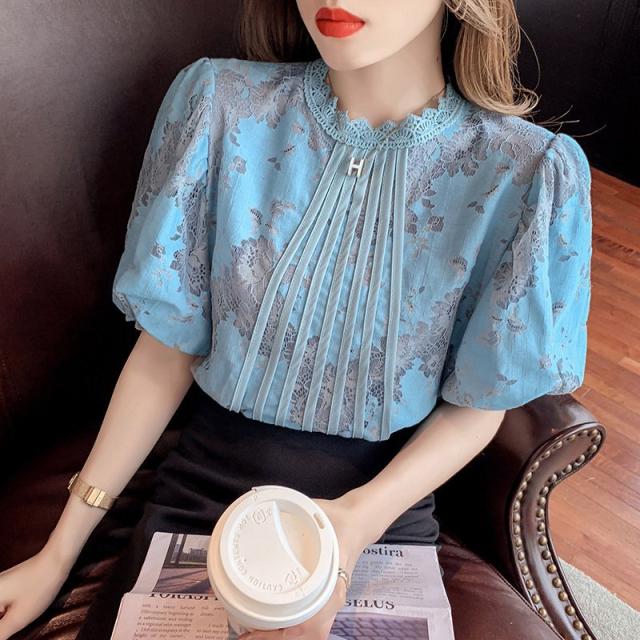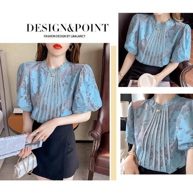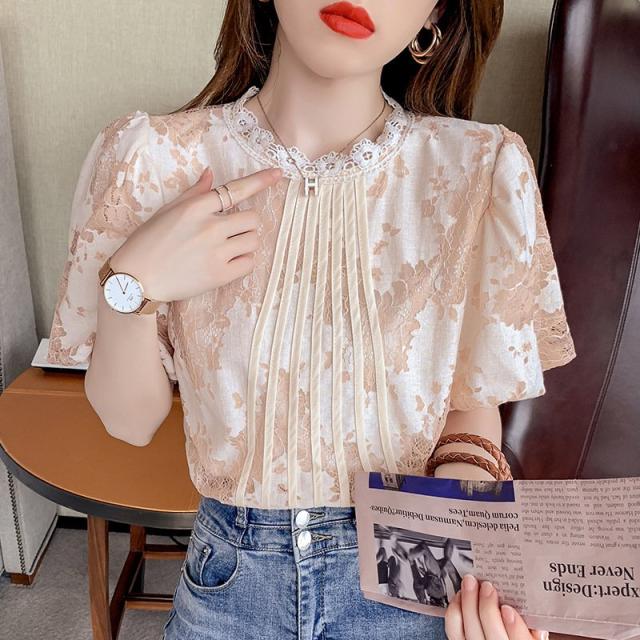 ブラウス レディース きれいめ 40代 春夏 上品 レース花刺繍ブラウス 白シャツ vネックトップス 五分袖 ゆったり オシャレ 韓国風 大人 Tシャツ30代 50代