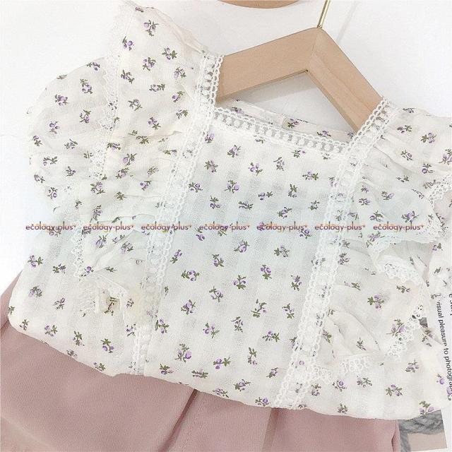 女の子の新しい洋風ショーツスーツ2021ネット赤女性赤ちゃん夏花柄シャツ小さな女の子花柄スーツ