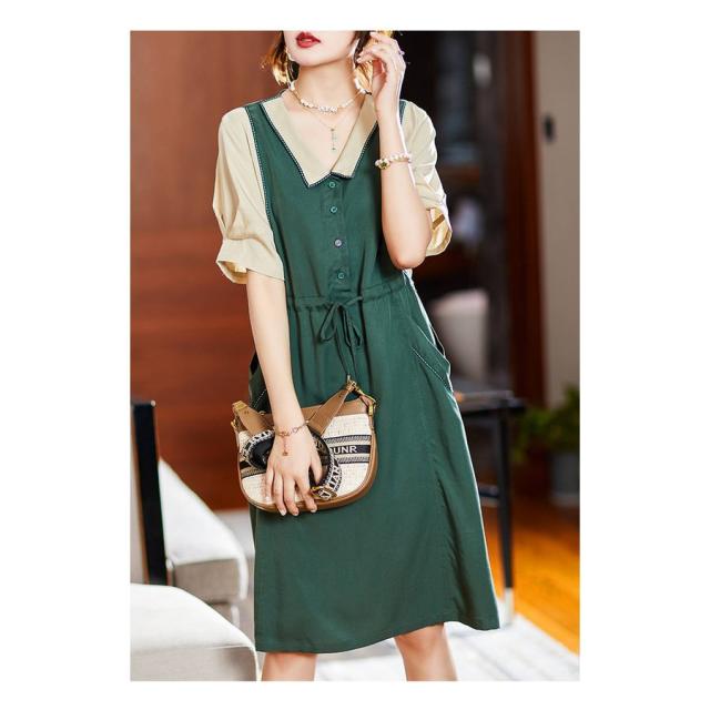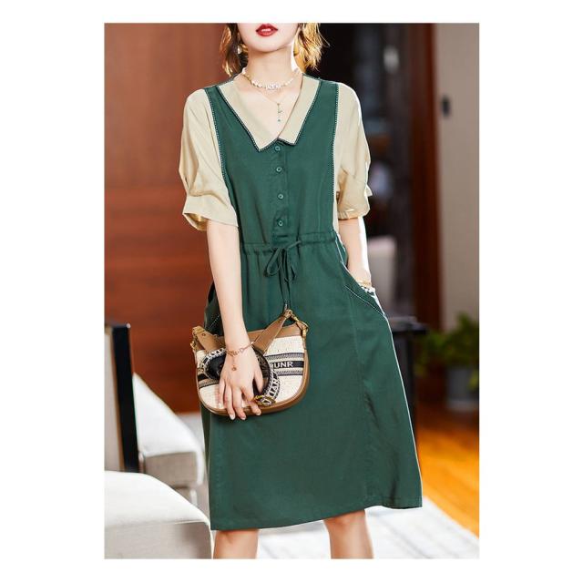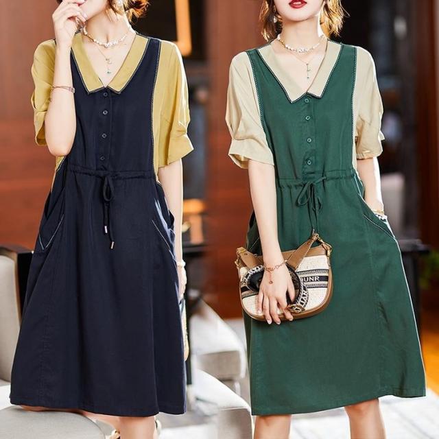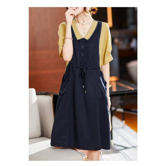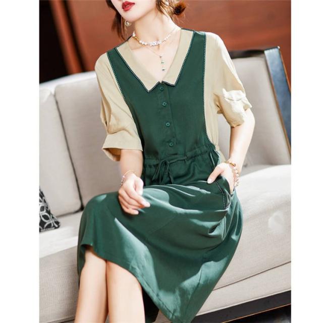 シャツワンピース レディース 40代 キレイめ マキシ丈ワンピース 春夏 半袖ワンピース 切り替え 通勤ドレス オシャレ 大きいサイズ 上品 着痩せ