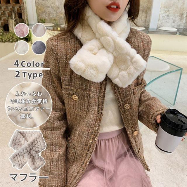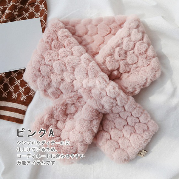 ファースヌード レディース ネックウォーマー 無地 マフラー フェイクファー ストール チョーカー ふわふわ あったかい シンプル 可愛い 心型 2TYPES