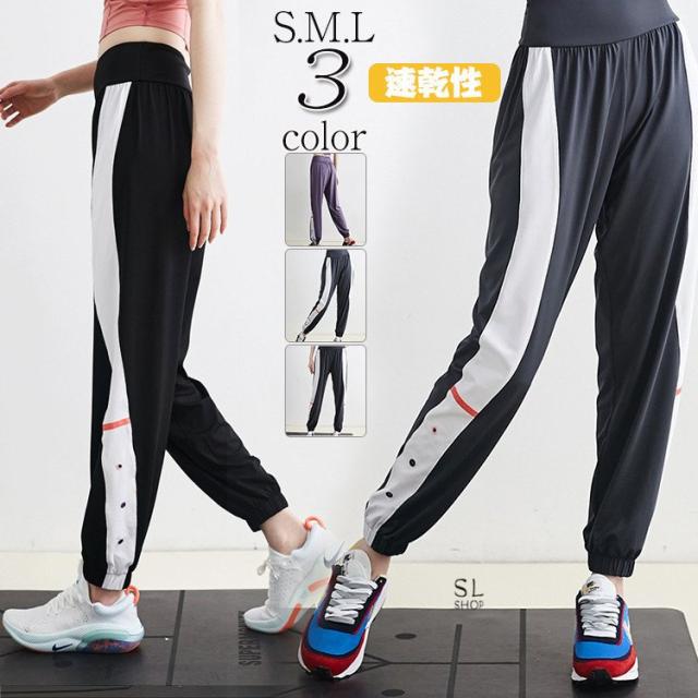 ラインパンツ レディース ヨガパンツ サイドライン ジョガーパンツ トラックパンツ イージーパンツ 速乾 トレーニング