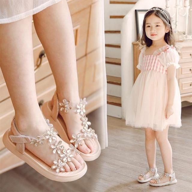 サンダル 女の子 キラキラ ダイヤ 花柄 女児 夏サンダル フラット底 子供 シューズ 夏 サンダル ゴージャス キッズサンダル おしゃれ
