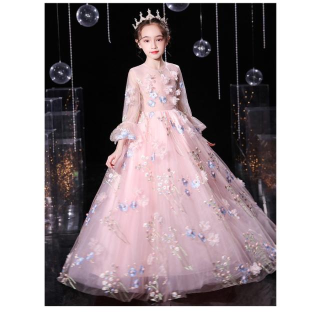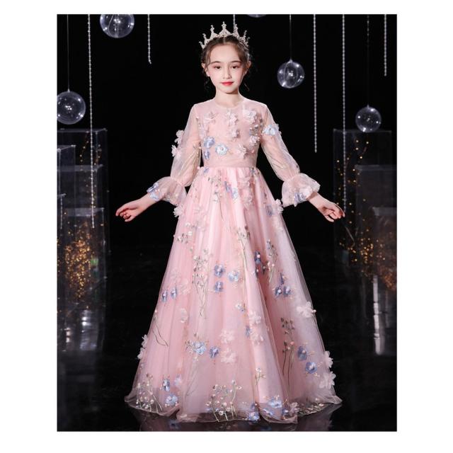 ドレス 子供 発表会 結婚式 子ども ワンピース 花刺繍 お呼ばれ/ピアノ演奏会 子供ドレス ドレス 子供 女の子 結婚式 披露宴卒業式 謝恩会