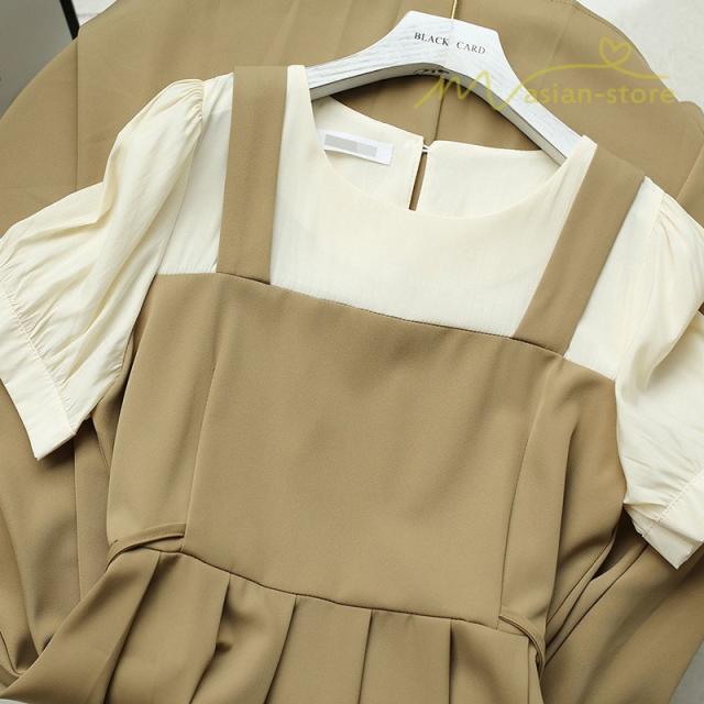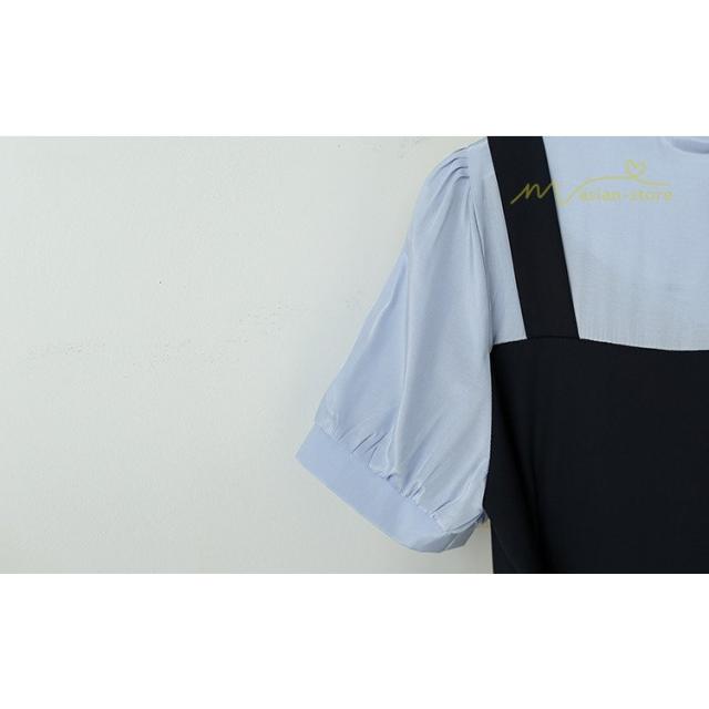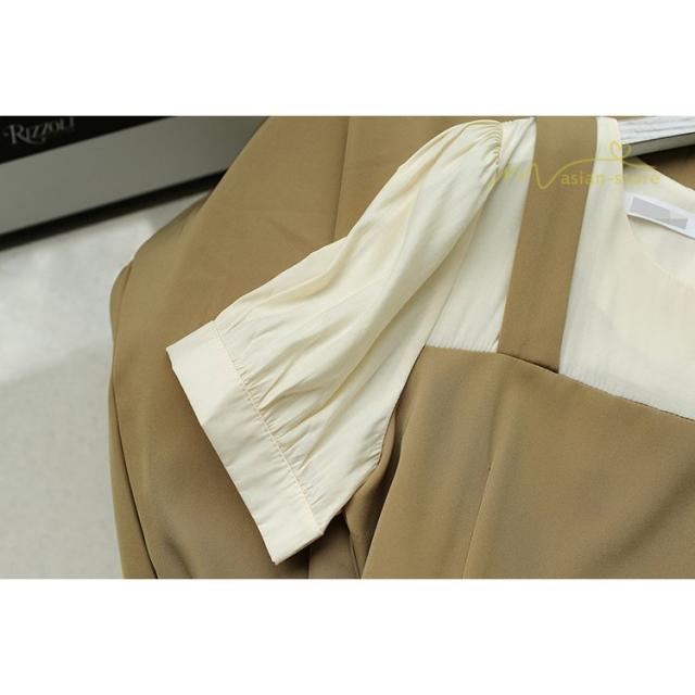 プリーツワンピース ワンピース 半袖 レディース お呼ばれ 二次会 ミモレ丈 ゆったり 夏 リゾート 体型カバー レイヤード 重ね着風 切り替え エレガント