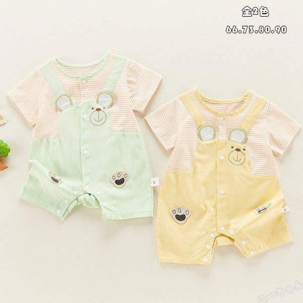 ベビー服 男の子 ロンパース くま ストライプ柄 半袖 夏着 可愛い ボディスーツ 新生児 赤ちゃん 出産祝い コットン お出かけ 保育園 ベビー用品 66 73 80 90