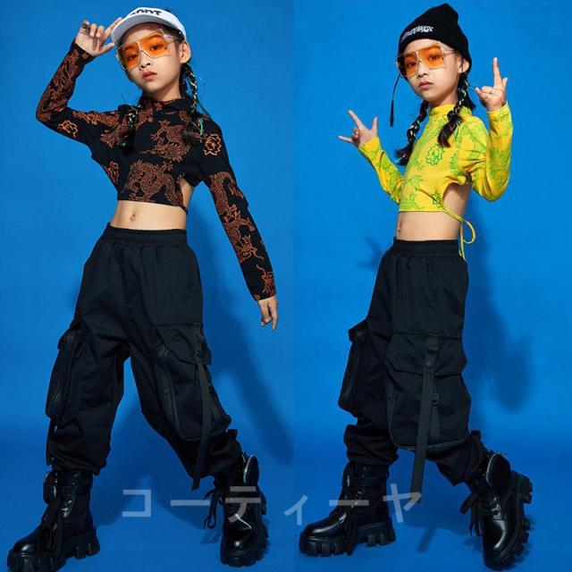 韓国 子供服 キッズ ダンス衣装 ヒップホップ 女の子 へそ出し ダンス 衣装 tシャツ ダンスパンツ 原宿系 ステージ衣装 dance 舞台服 練習着 派手 激安