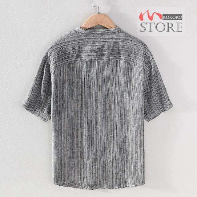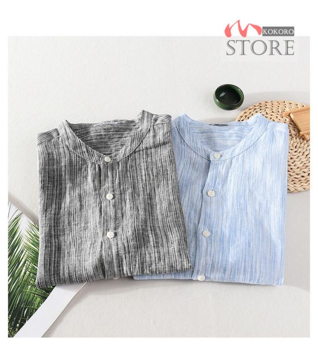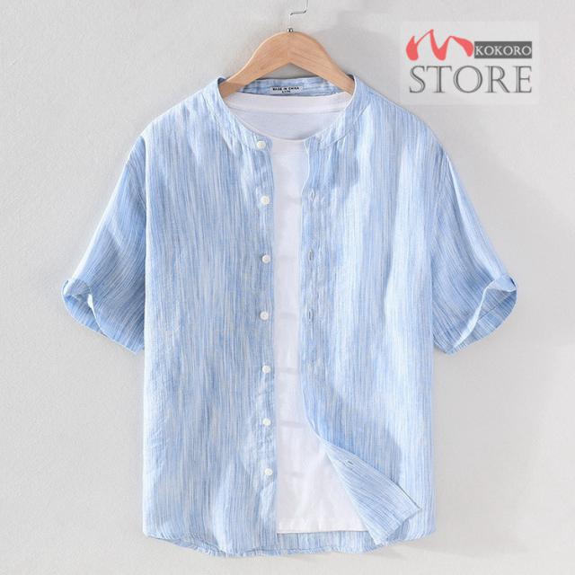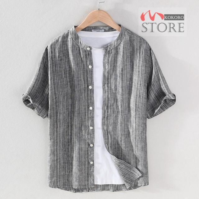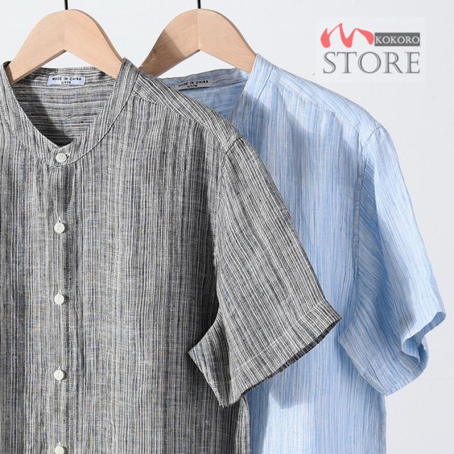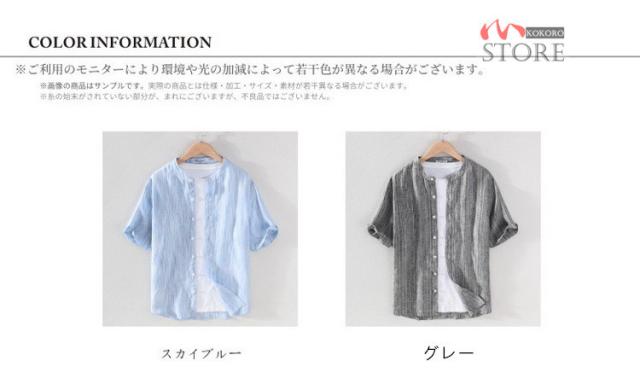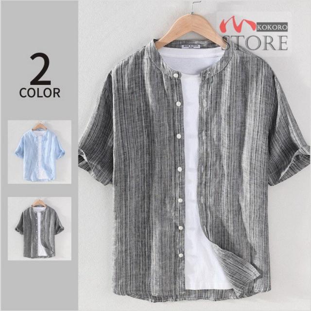 半袖シャツ メンズ リネンシャツ バンドカラーシャツ カジュアルシャツ 綿麻シャツ 詰襟 涼しい 夏物 夏