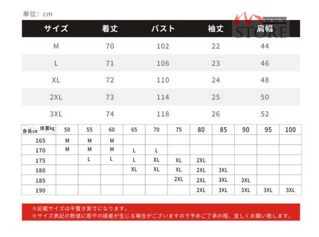 | サイズ | M L XL 2XL 3XL |